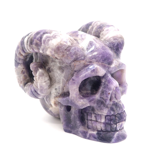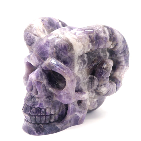 4.4lb Dream Amethyst Crystal Horned Skull Sculpture Quartz Healing