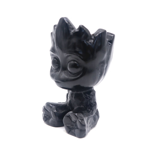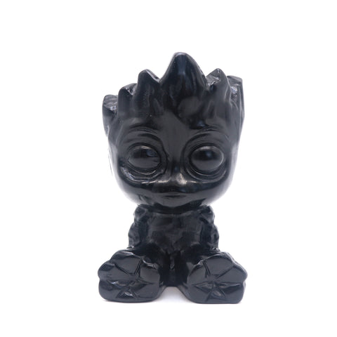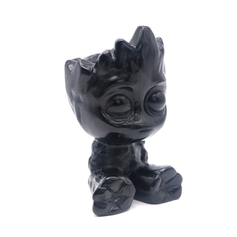 Carved Black Obsidian Crystal Groot Sculpture Healing Decorate Gift
