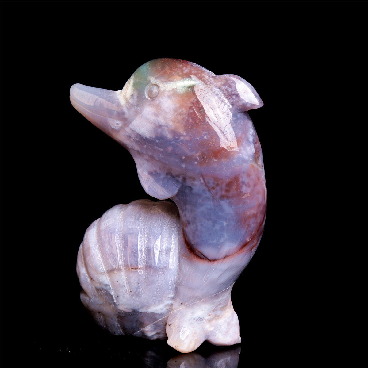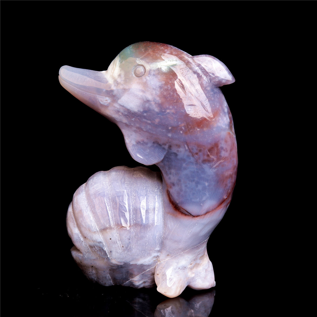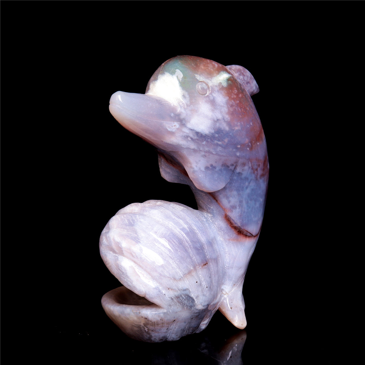 4.5" Ocean Jasper Crystal Dolphin Figurine Stone Animal Carvings Decor