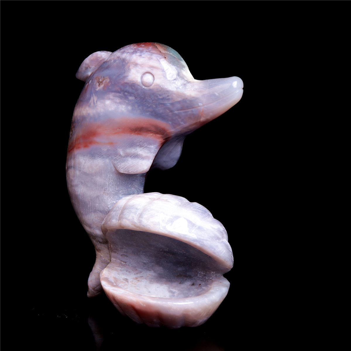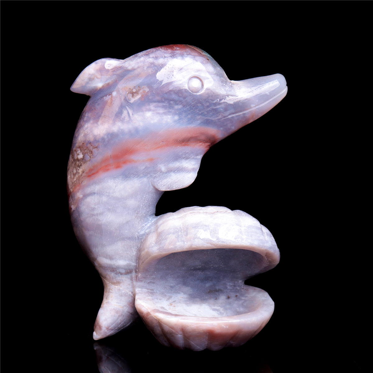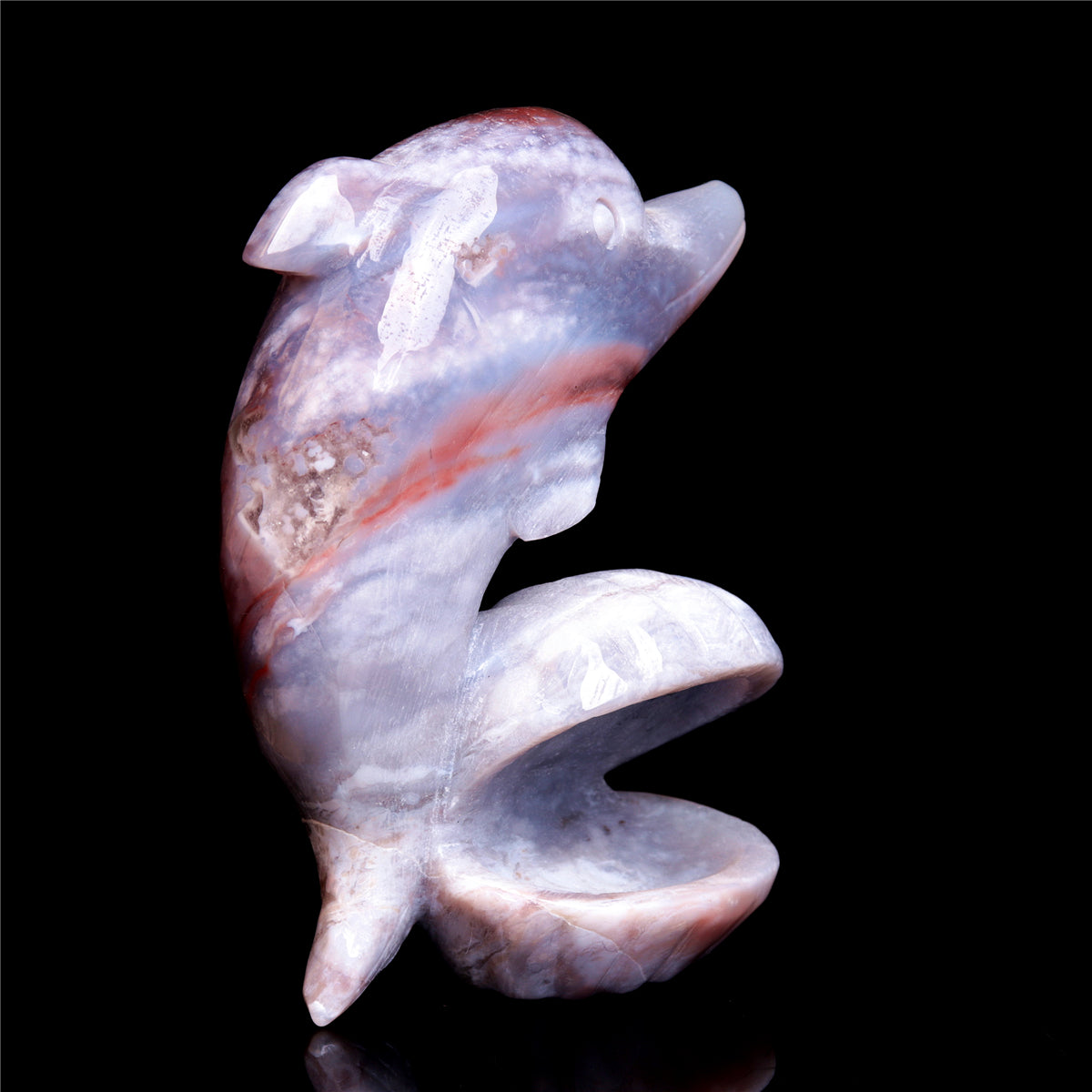 4.5" Ocean Jasper Crystal Dolphin Figurine Stone Animal Carvings Decor