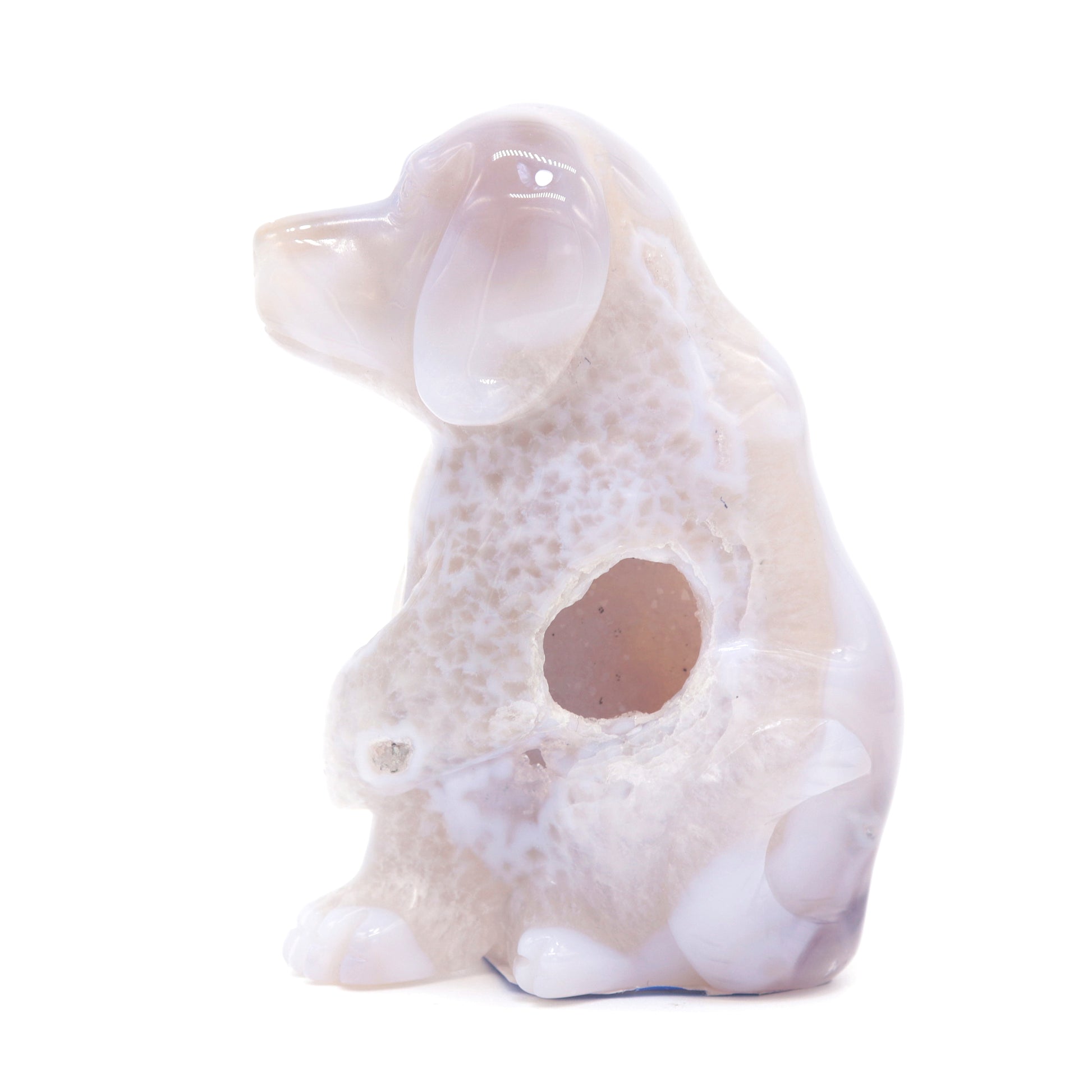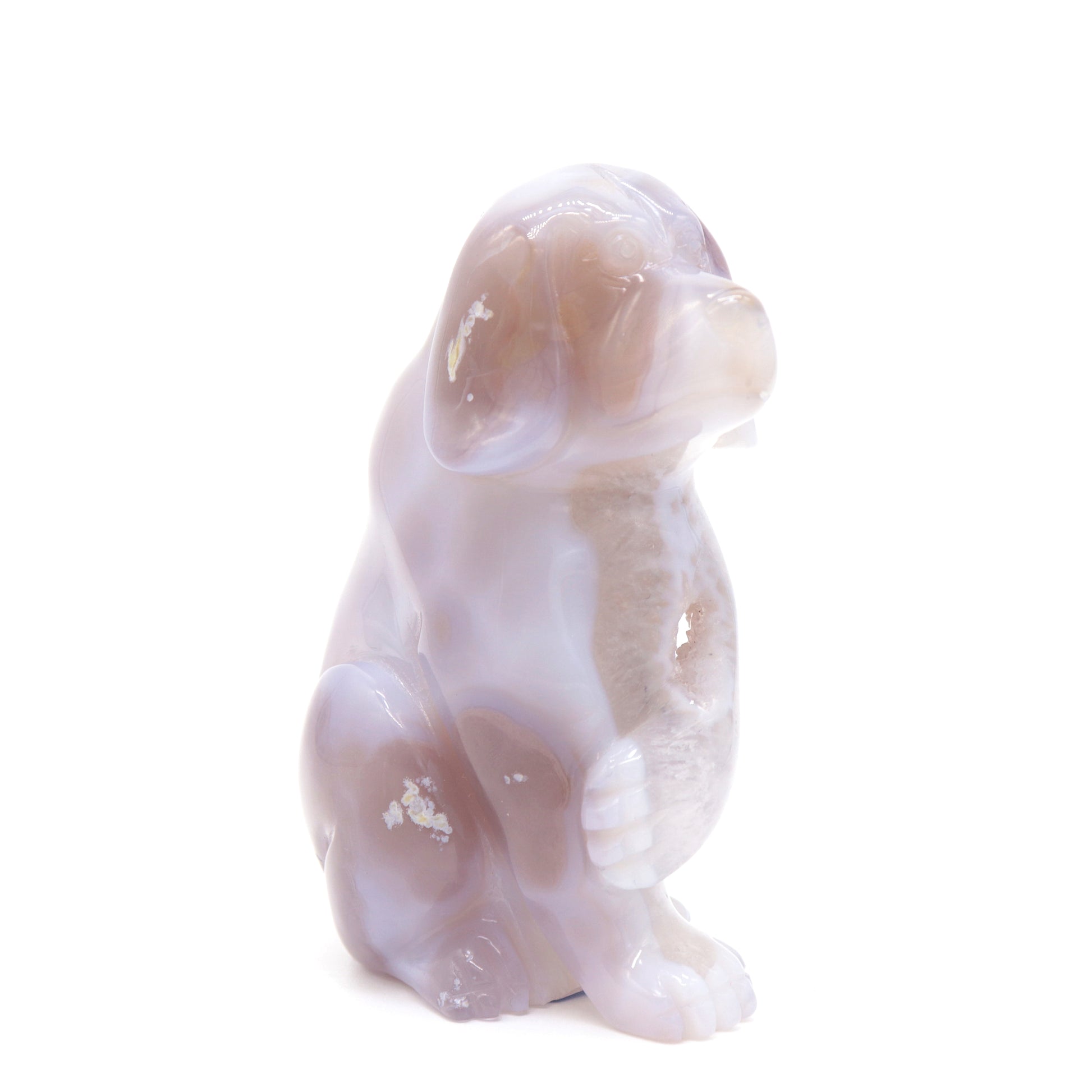 4" Hand Carved Druzy Agate Dog Sculpture Crystal Puppy Carving Healing