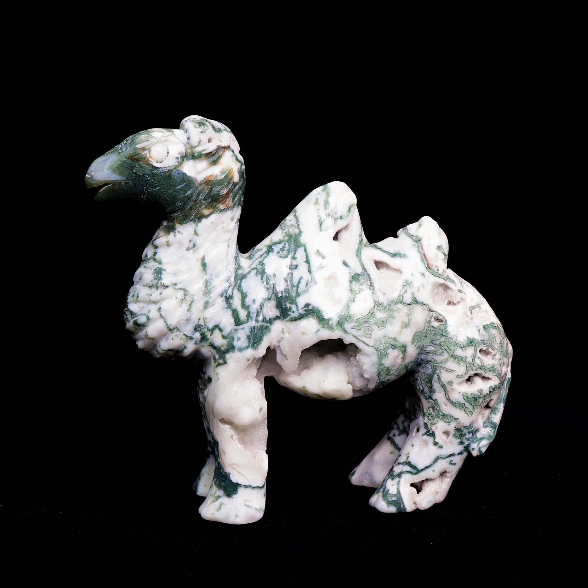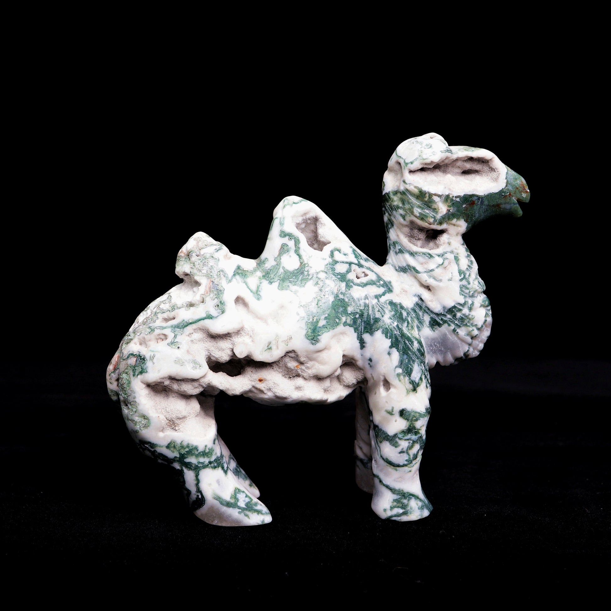 5.5" Moss Agate Carved camel Figurine Realistic Crystal Healing Quartz Decor