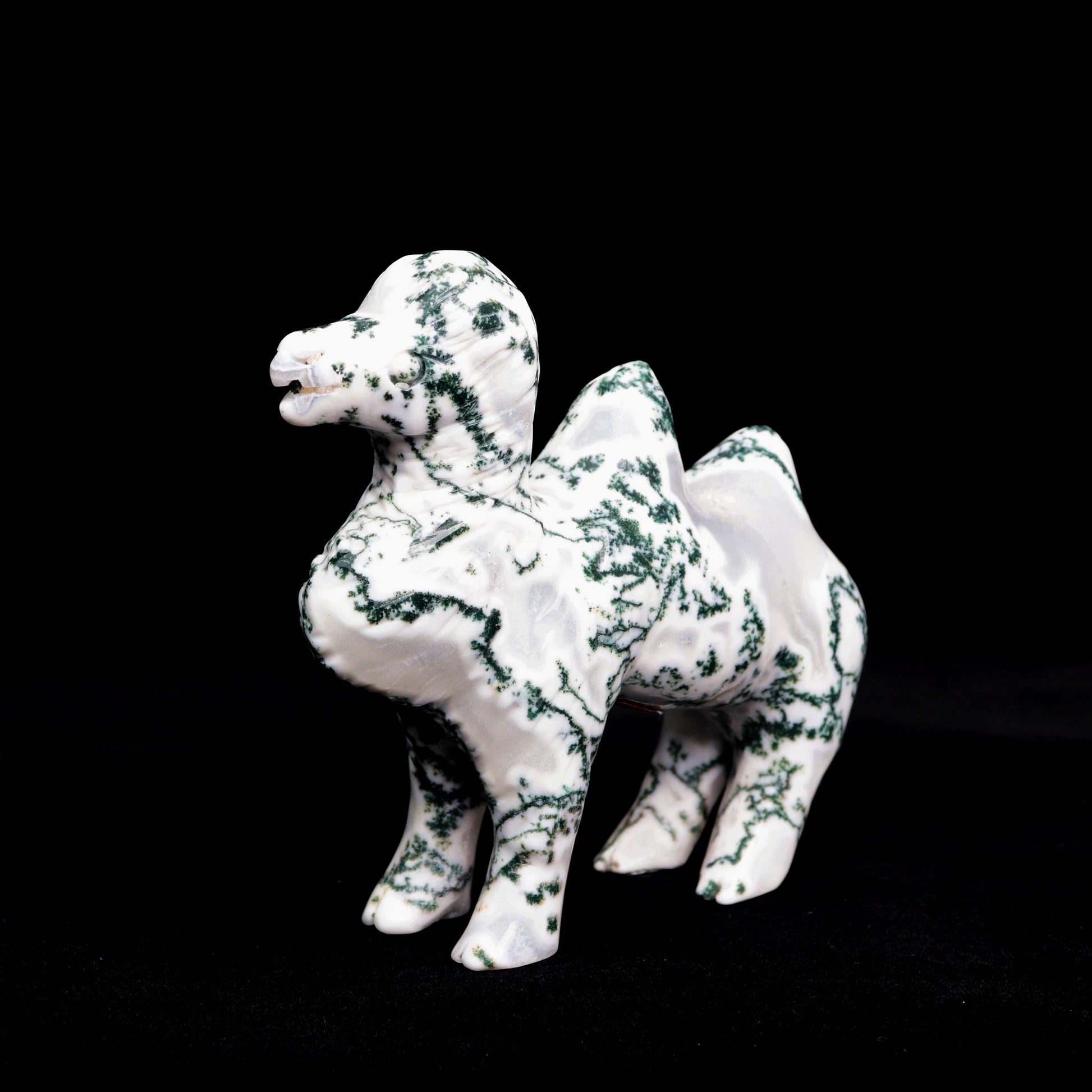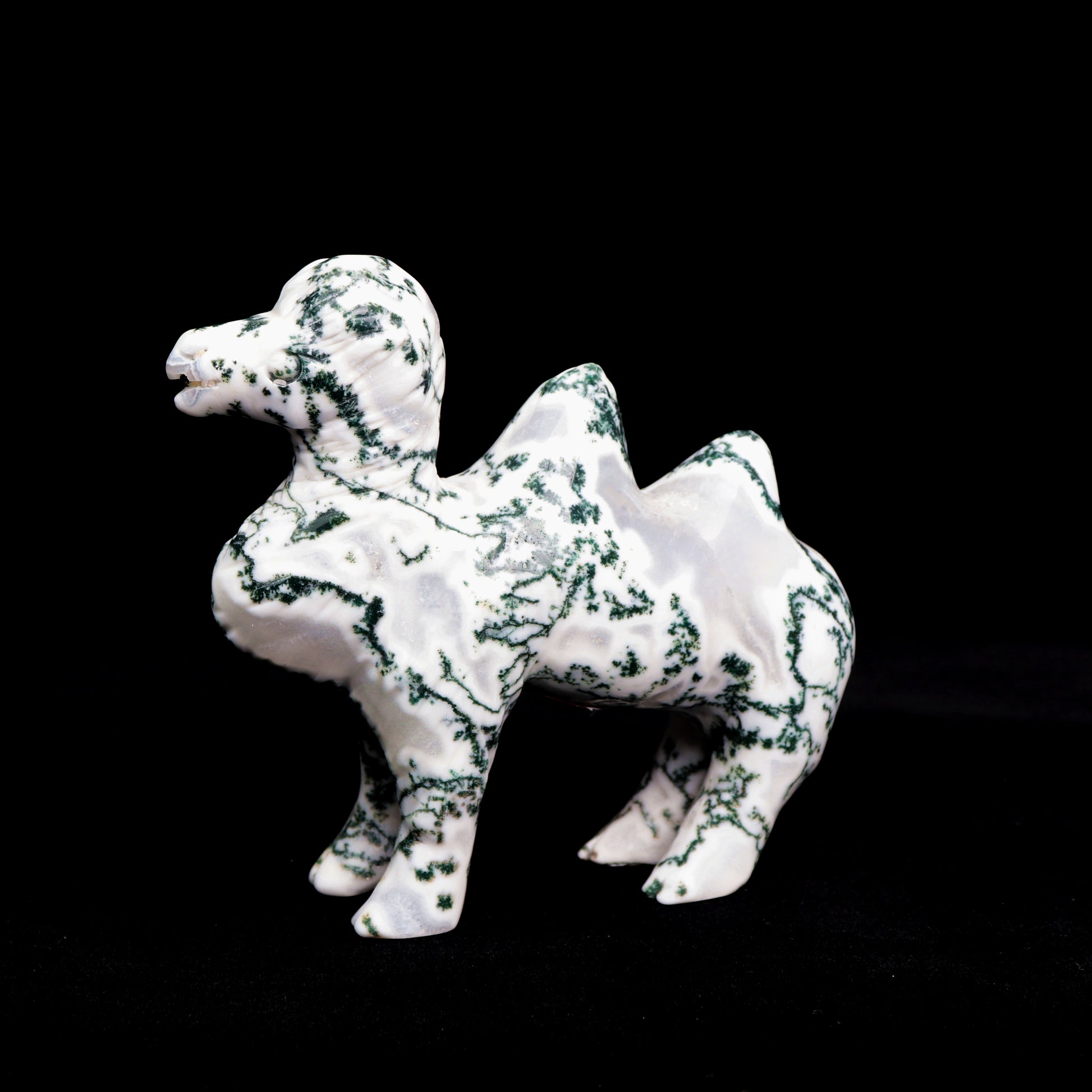 5.5" Moss Agate Carved camel Sculpture Realistic Crystal Healing Quartz Decor
