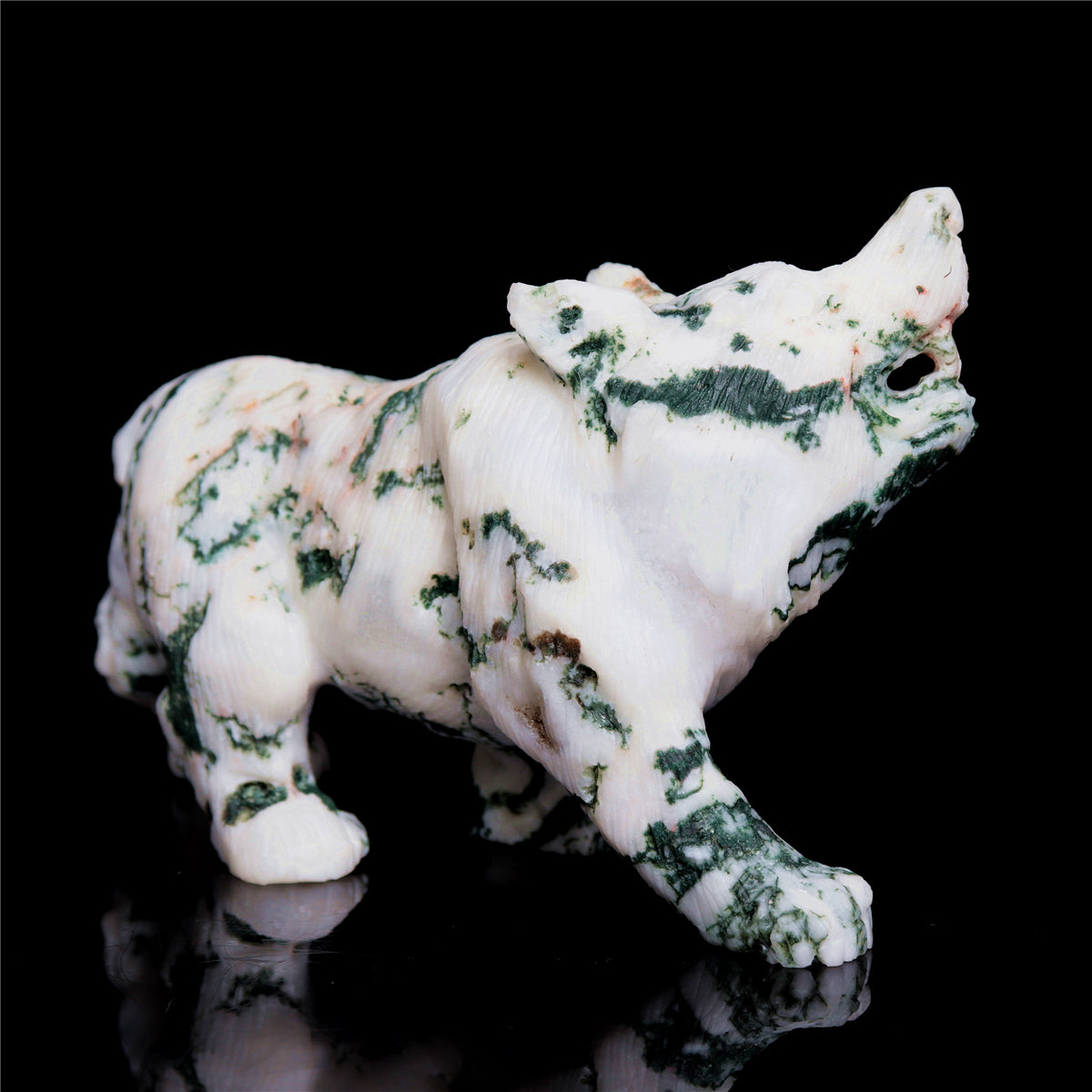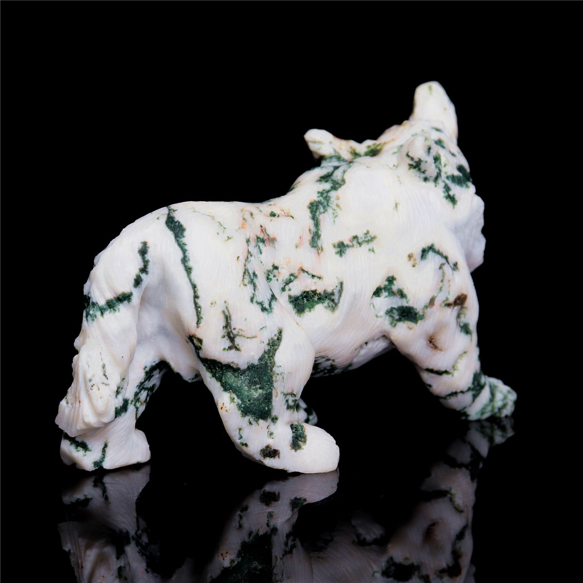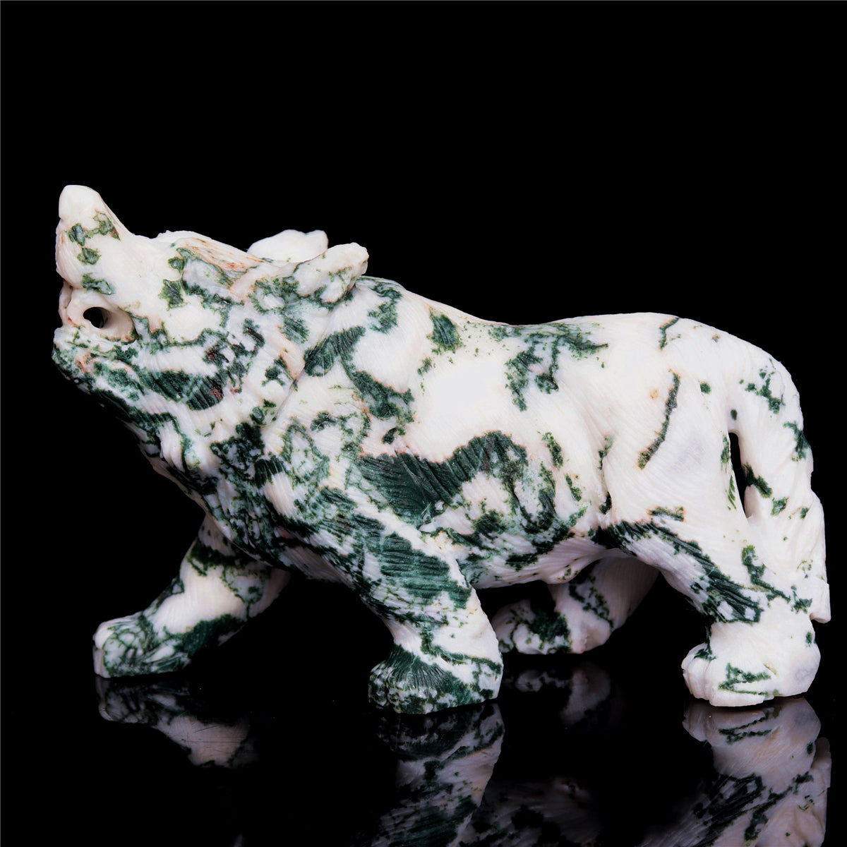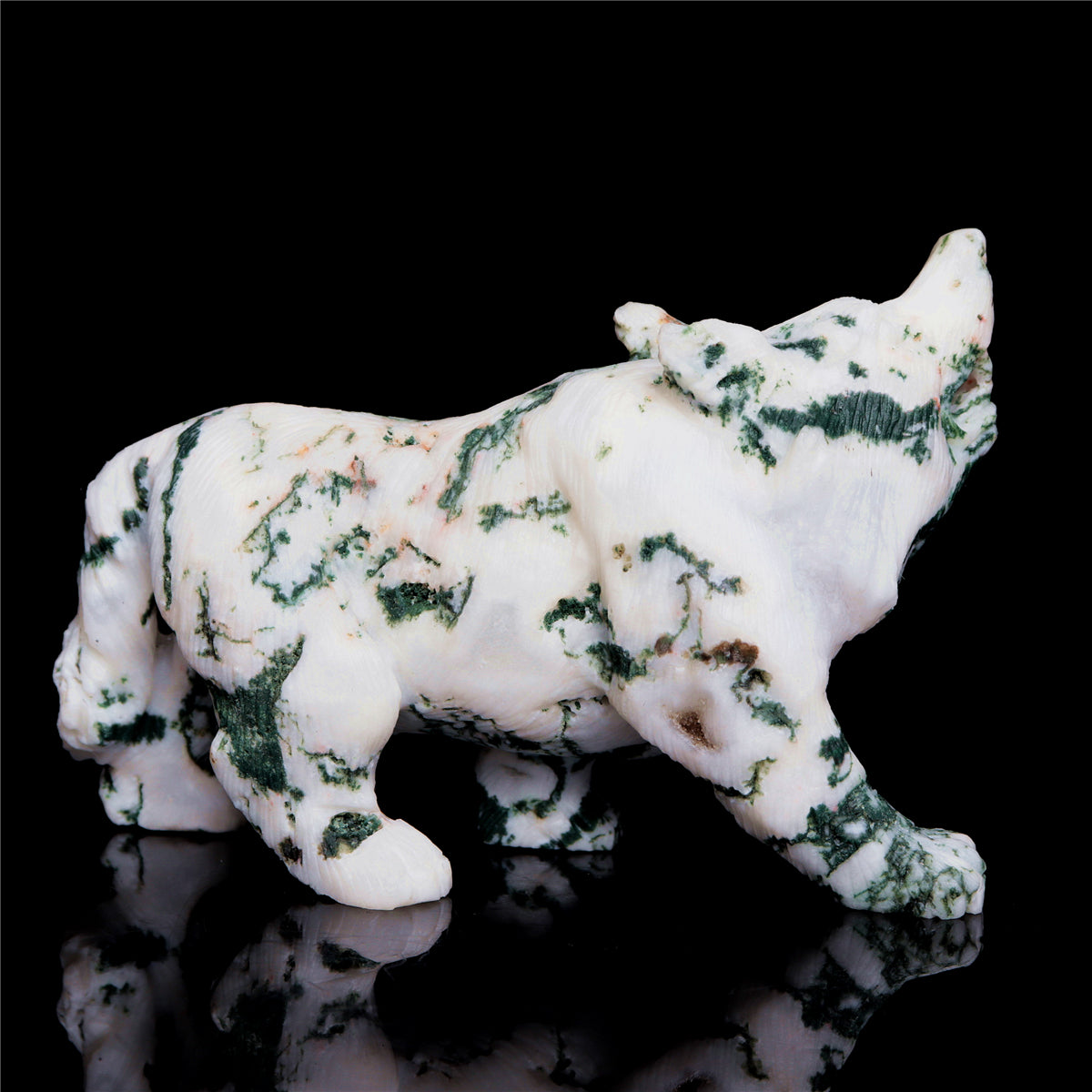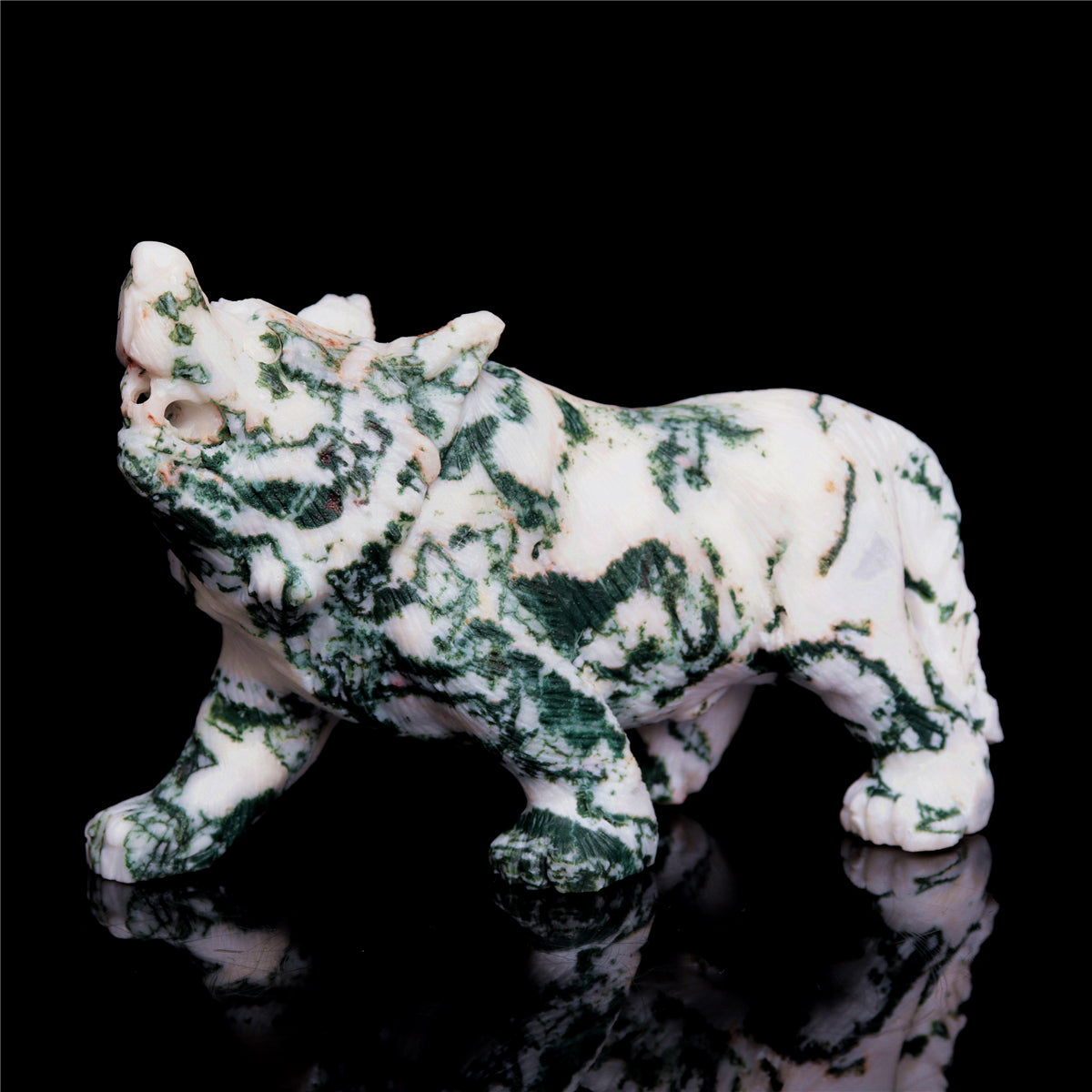 5.5" Moss Agate Crystal Wolf Figurine Stone Animal Carvings