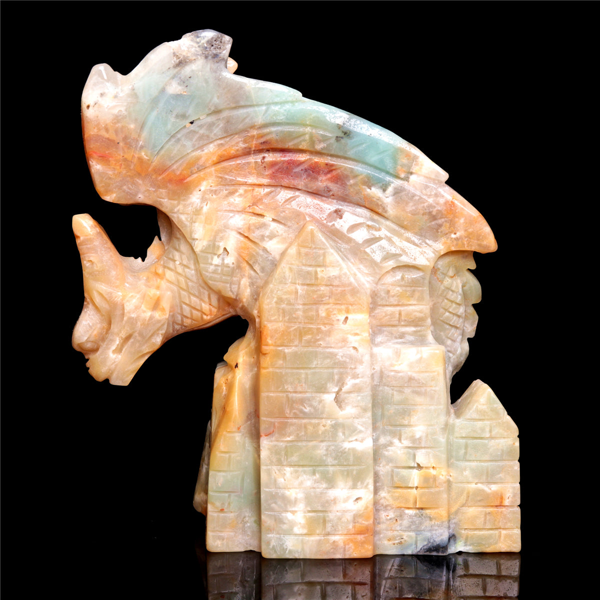 5" Amazonite Crystal Dragon Figurine Stone Animal Carvings Decor