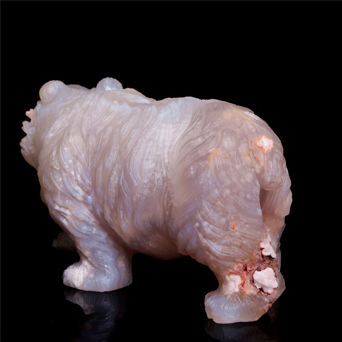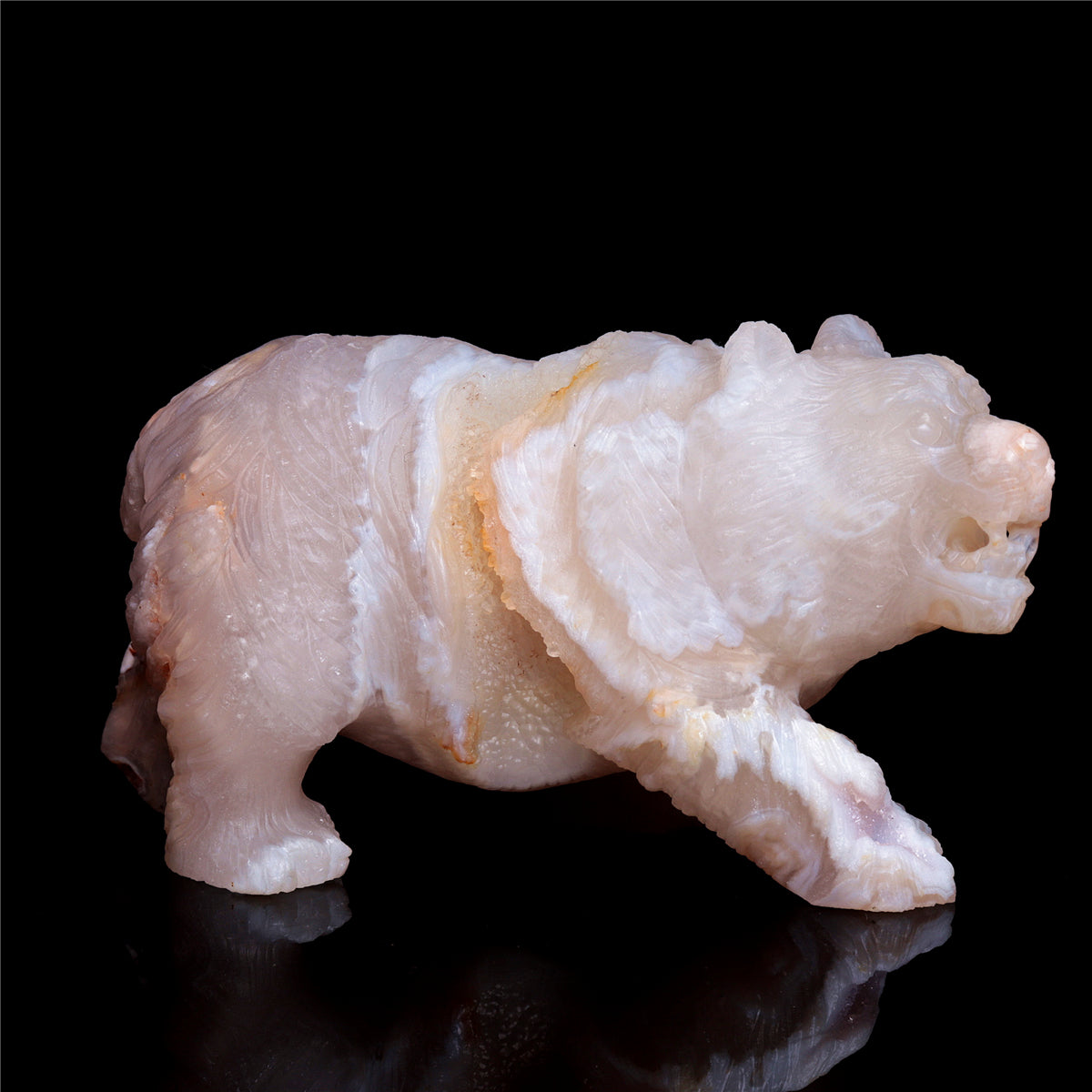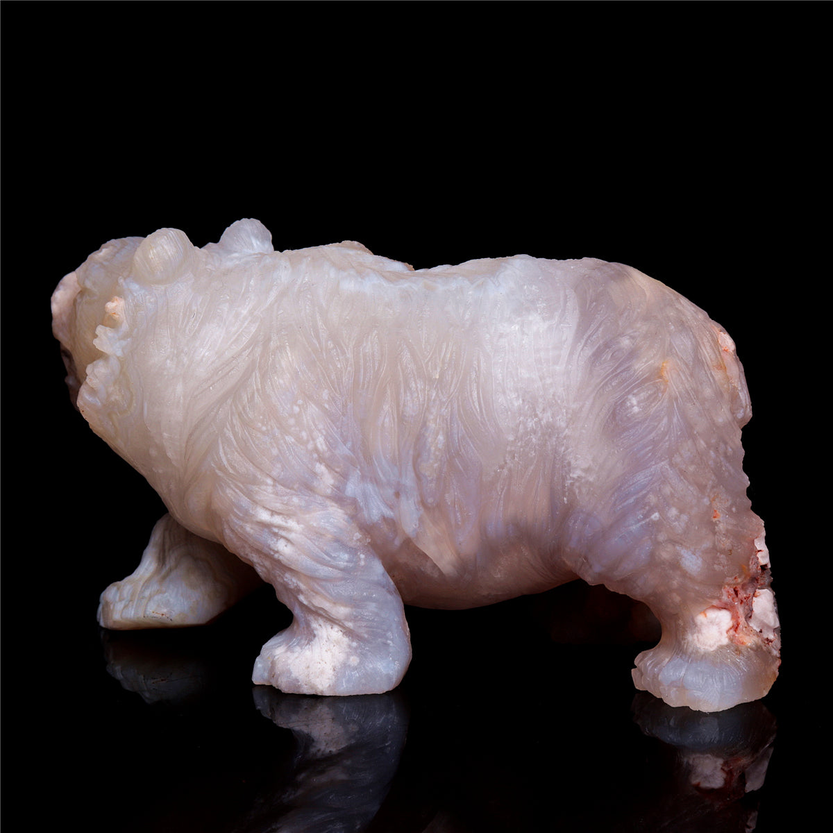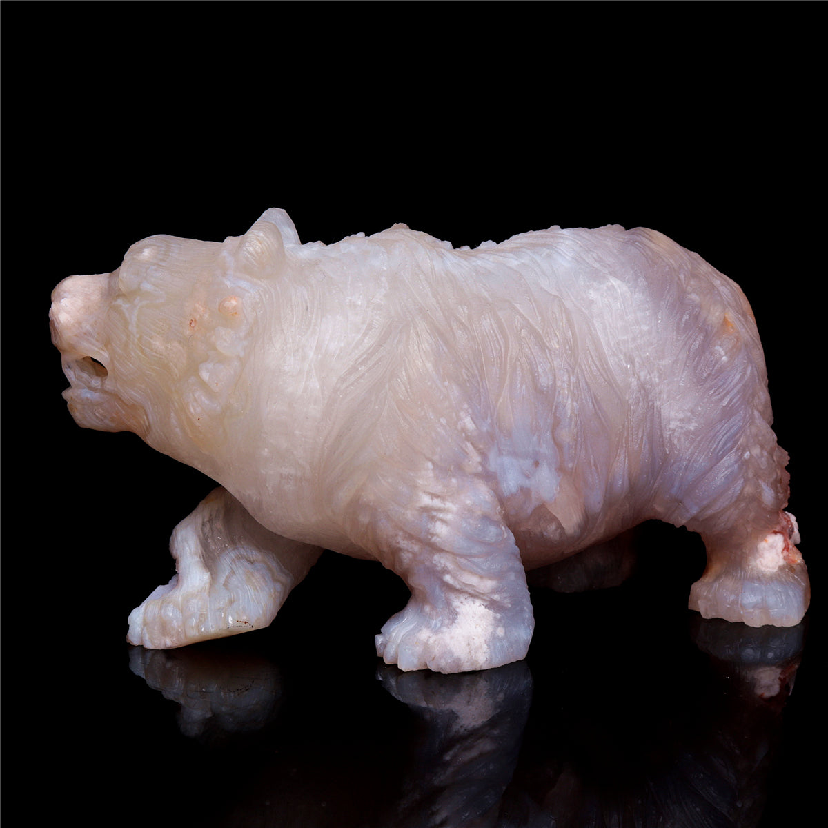 5" Flower Agate Crystal Bear Figurine Stone Animal Carvings