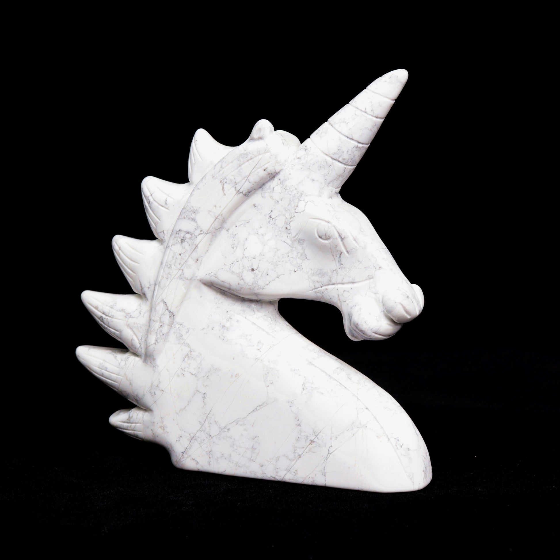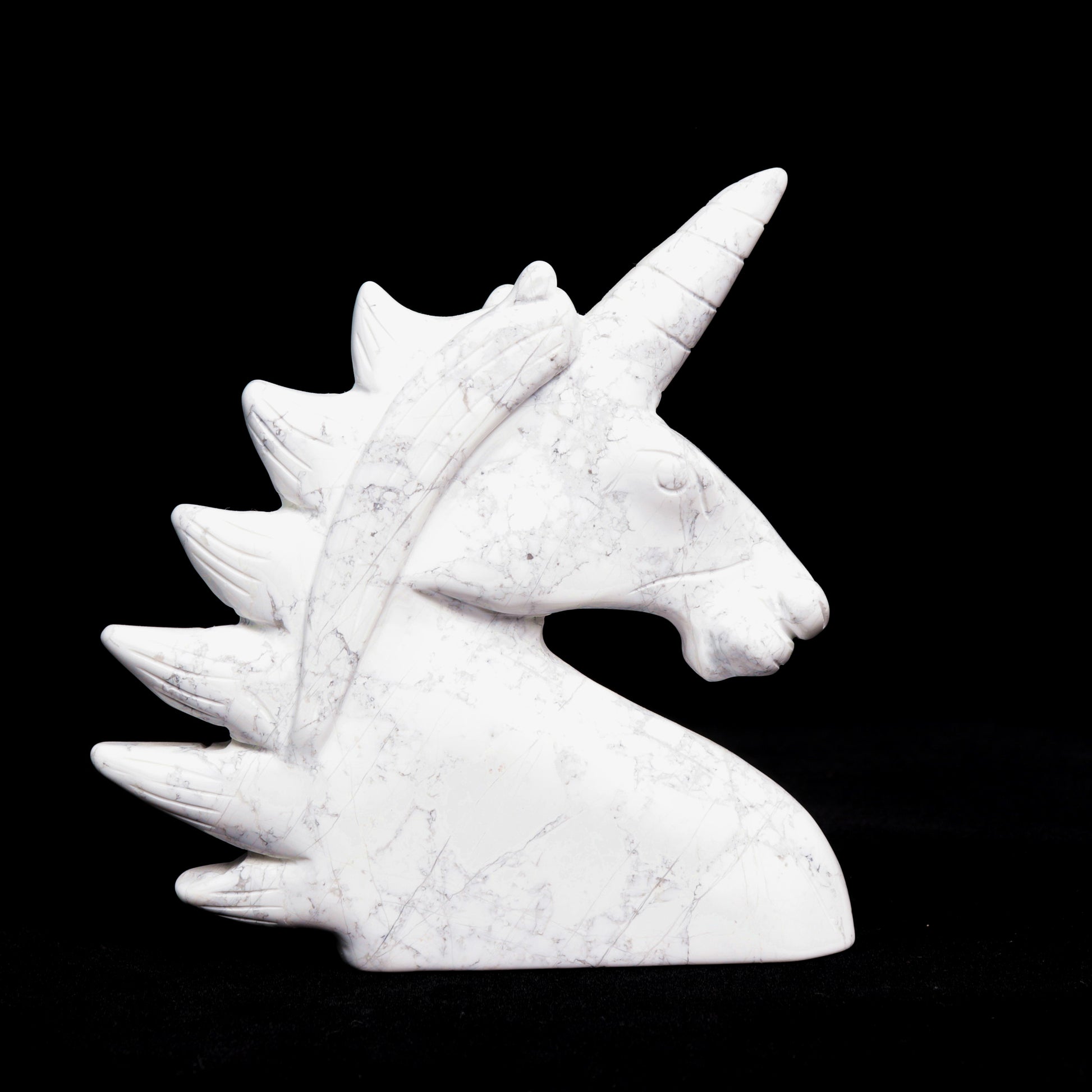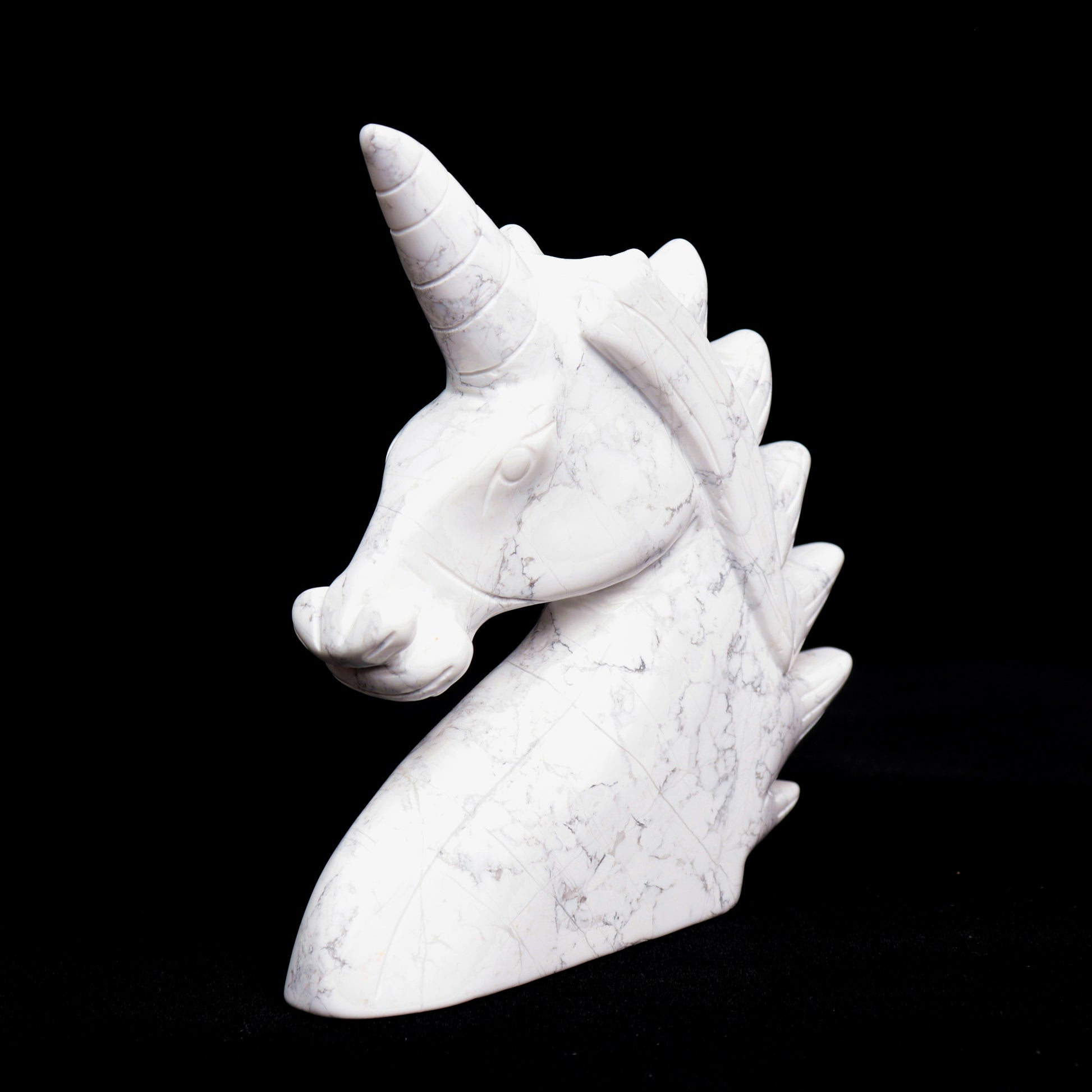 5" Howlite Carved Unicorn Sculpture Realistic Crystal Healing Quartz Decor