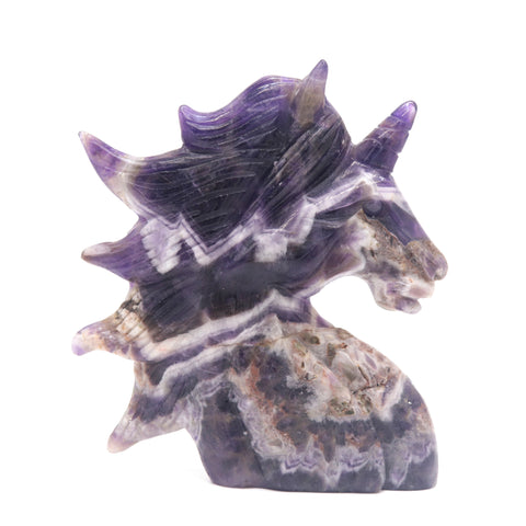 5" Natural Dream Amethyst Hand Carved Unicorn Sculpture, Reiki Healing U08