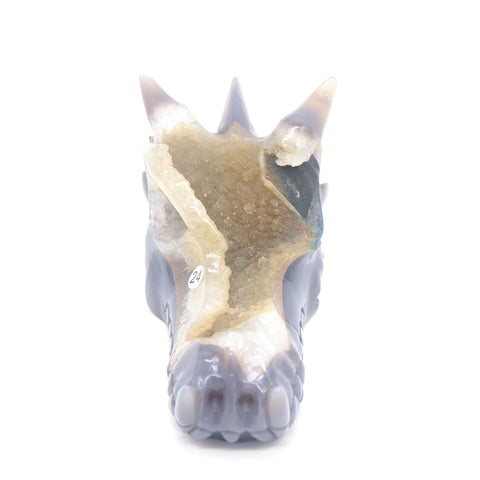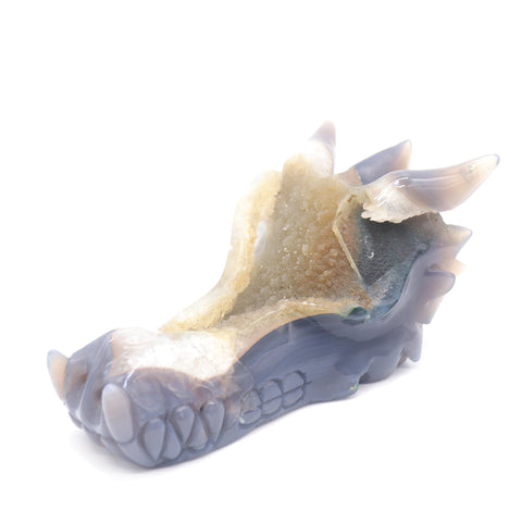 6.5" Agate Druzy Hand Carved Dragon Head Figurine Crystal Healing