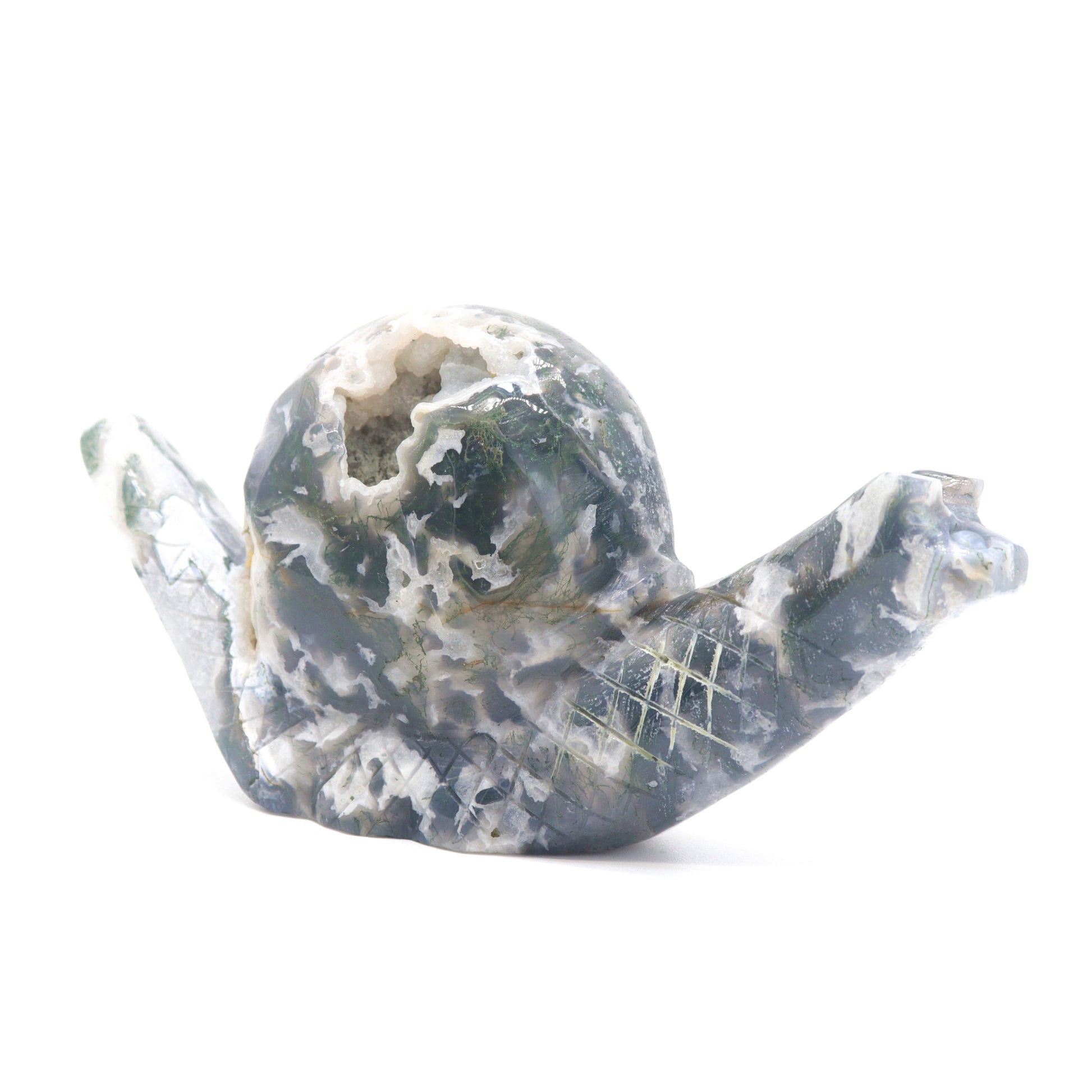 6.5" Hand Carved Moss Agate Snail Crystal Animal Statues Quartz Healing Decor Reiki