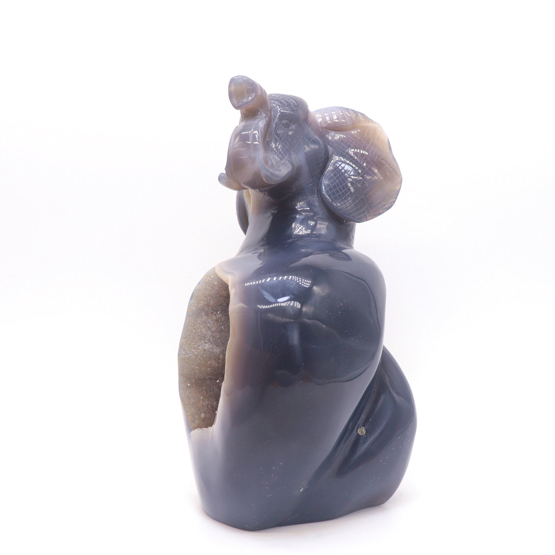 6.9" HandCarved Druzy Agate Crystal Elephant Figurine Decorate Gift