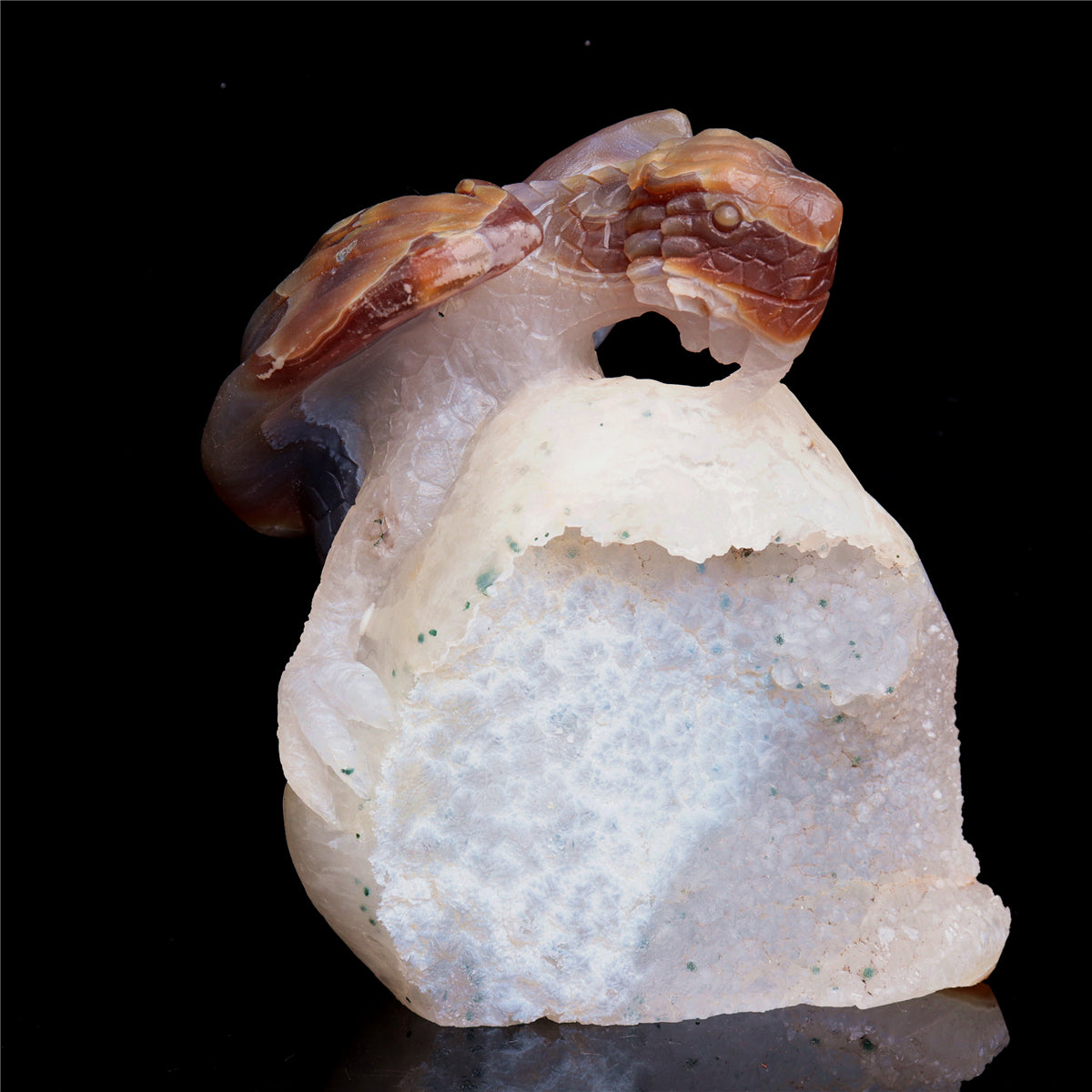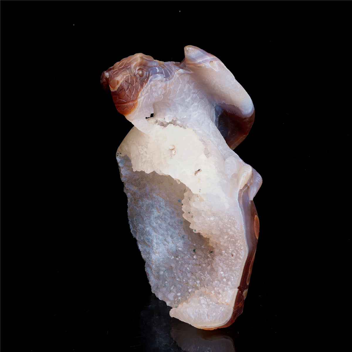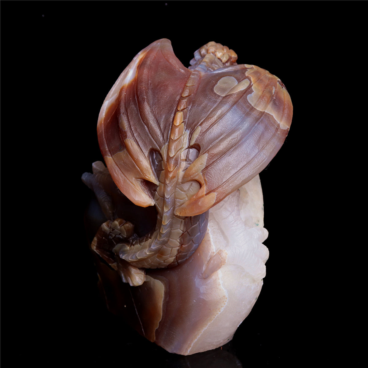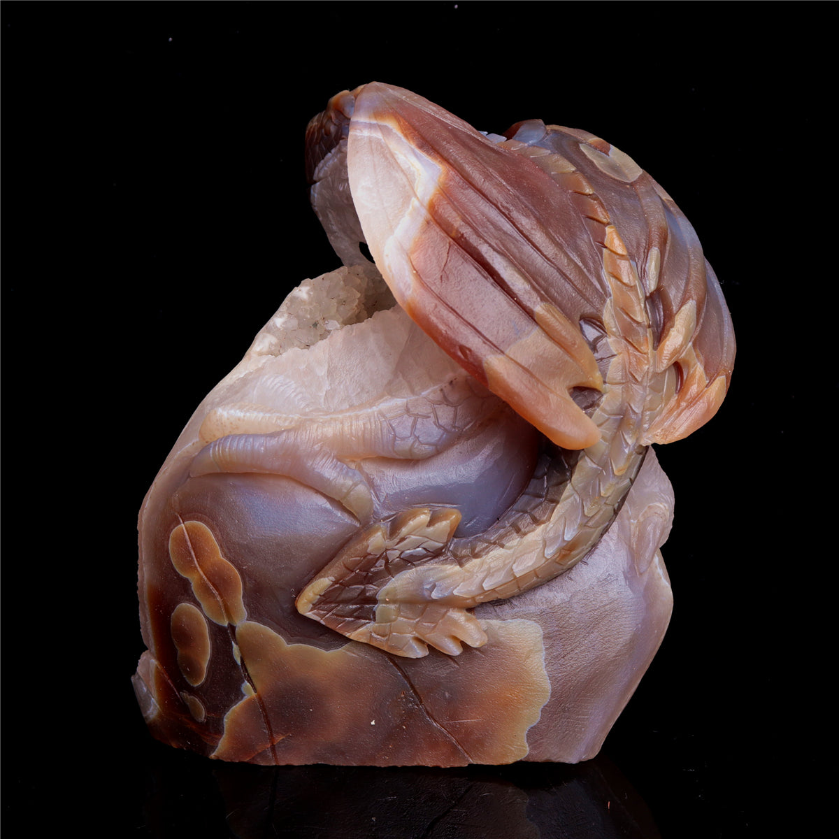 6" Druzy Agate Crystal Dragon Figurine Stone Animal Carvings