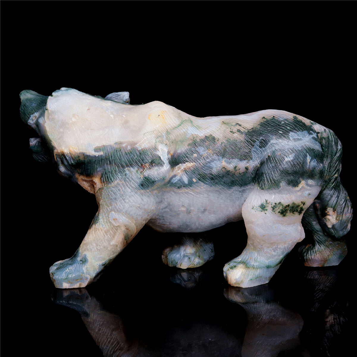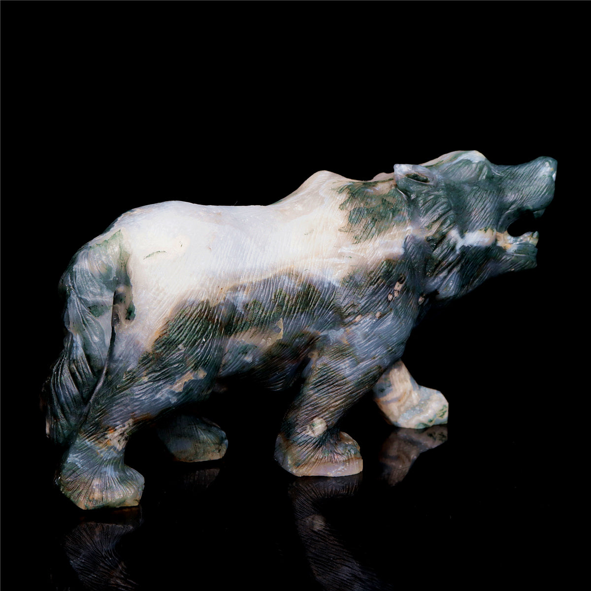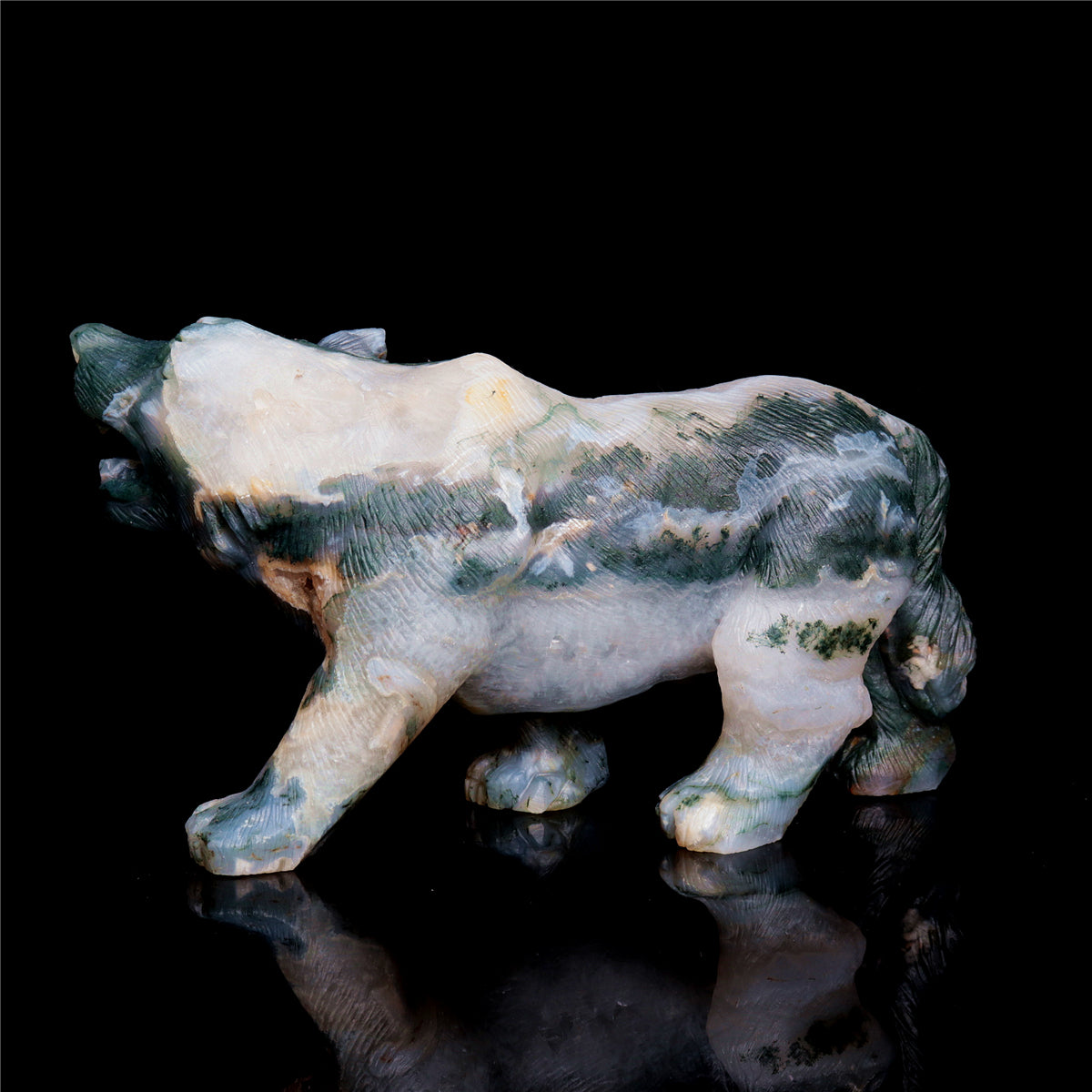 6" Moss Druzy Agate Crystal Wolf Figurine Stone Animal Carvings