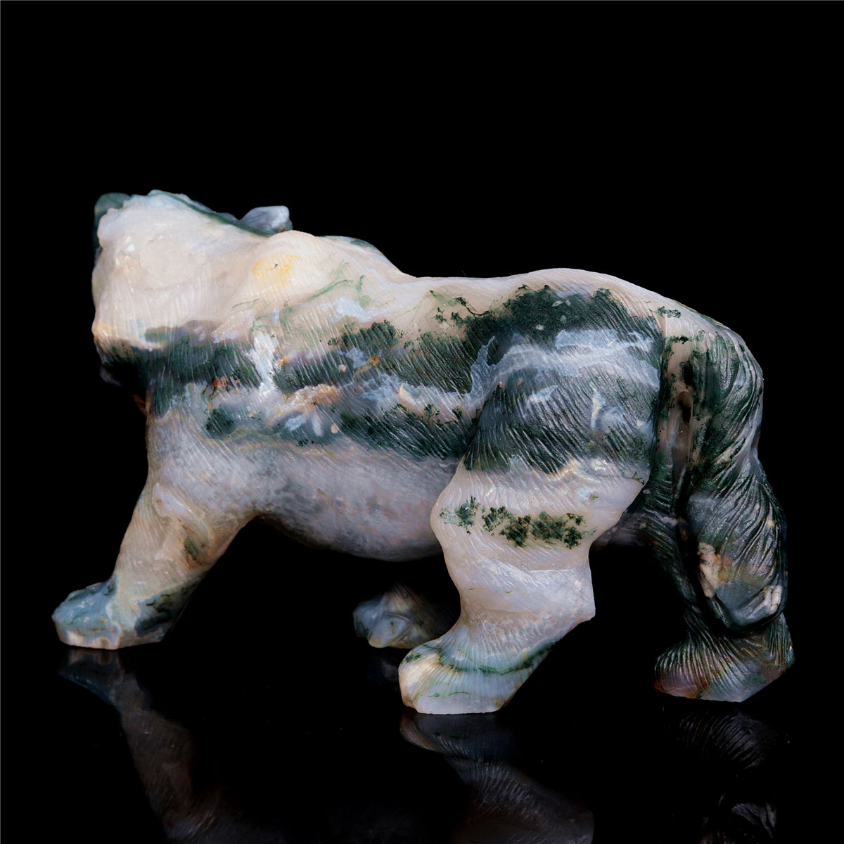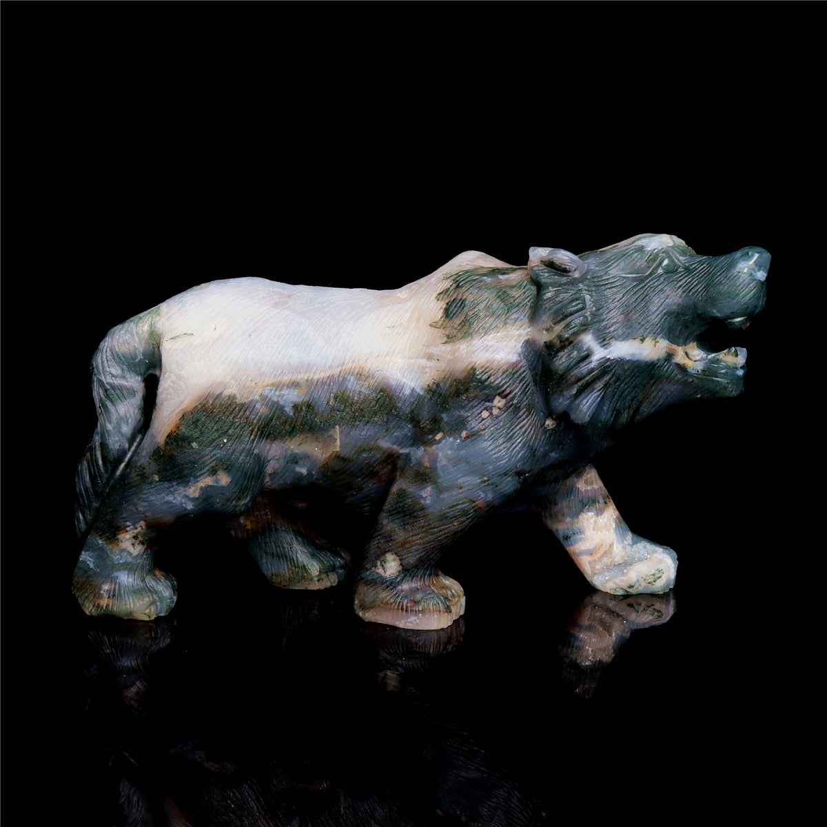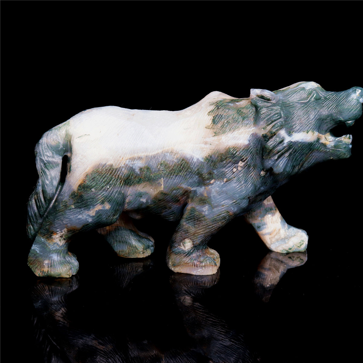 6" Moss Druzy Agate Crystal Wolf Figurine Stone Animal Carvings