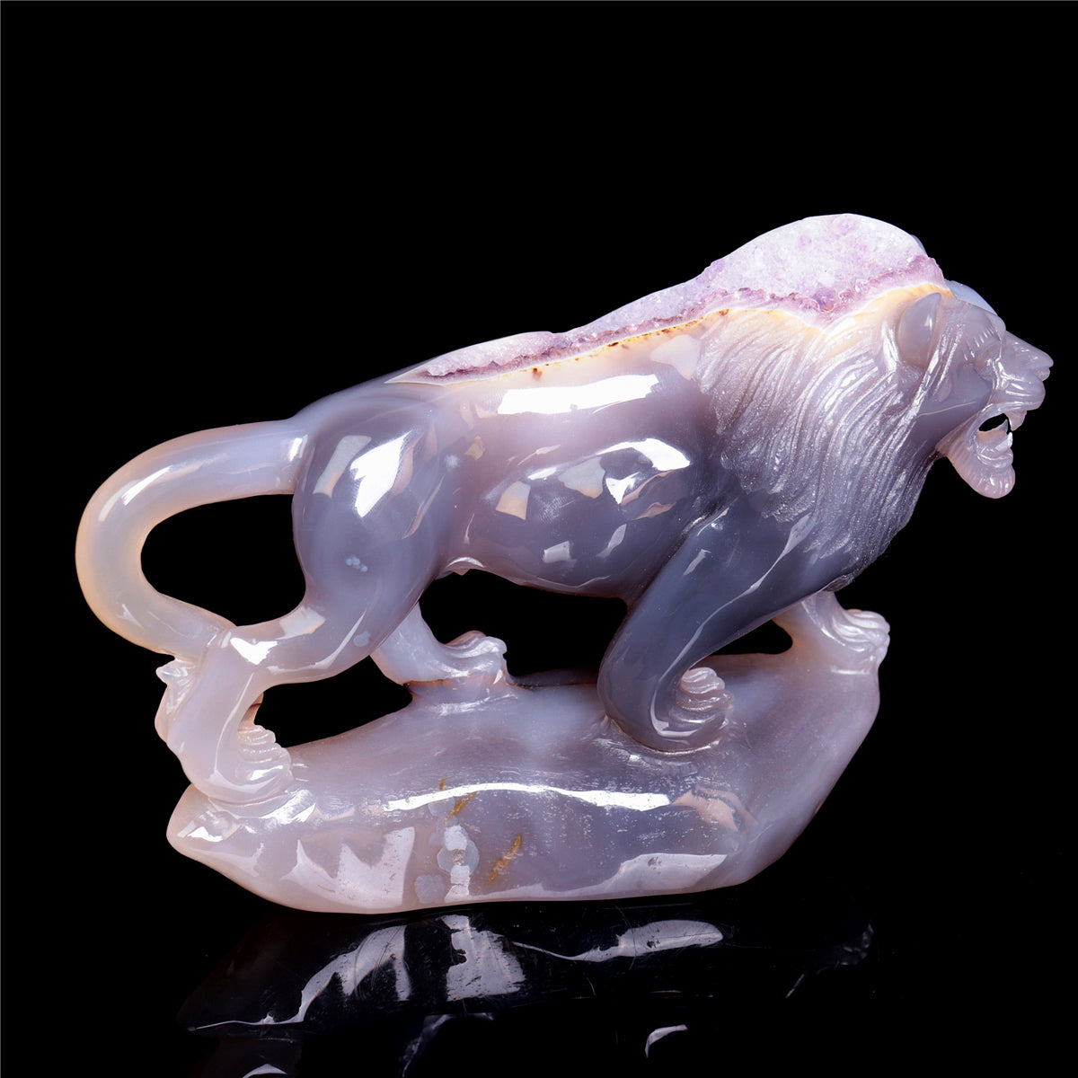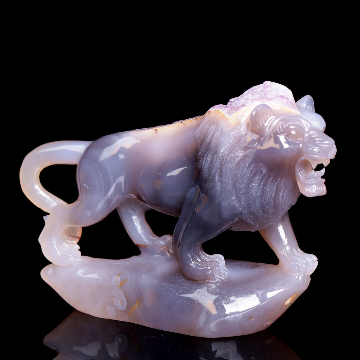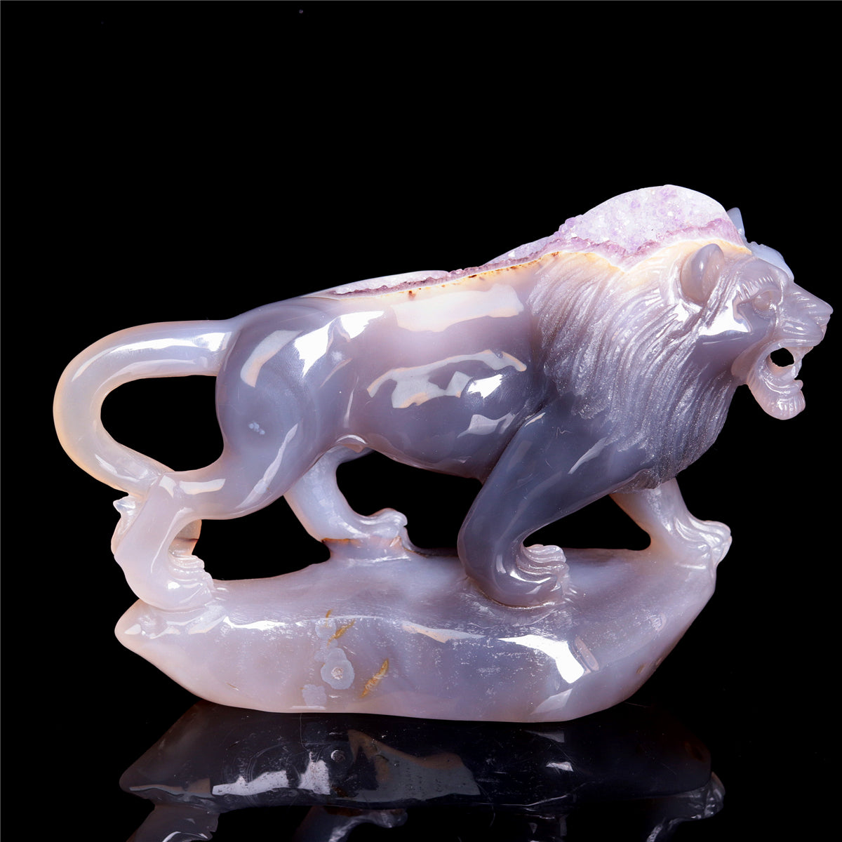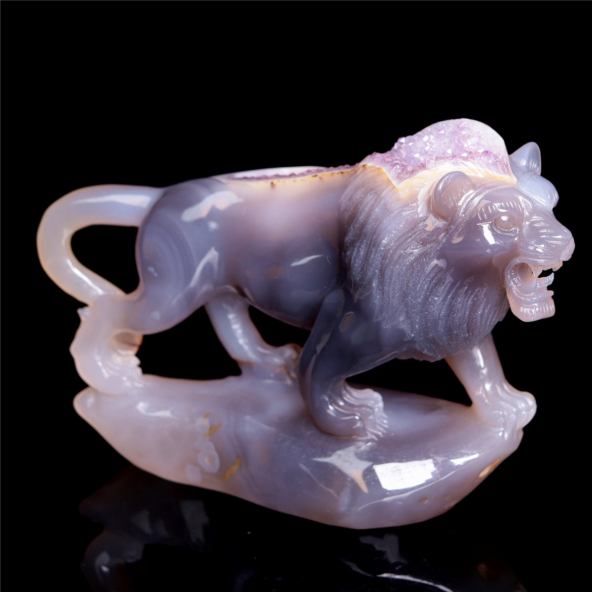 7.5" Amethyst Druzy Agate Crystal Lion Figurine Realistic Animal Carvings Decor