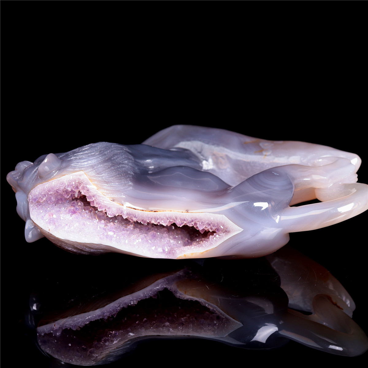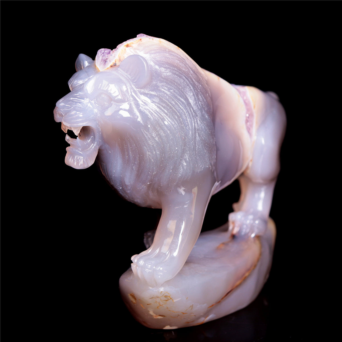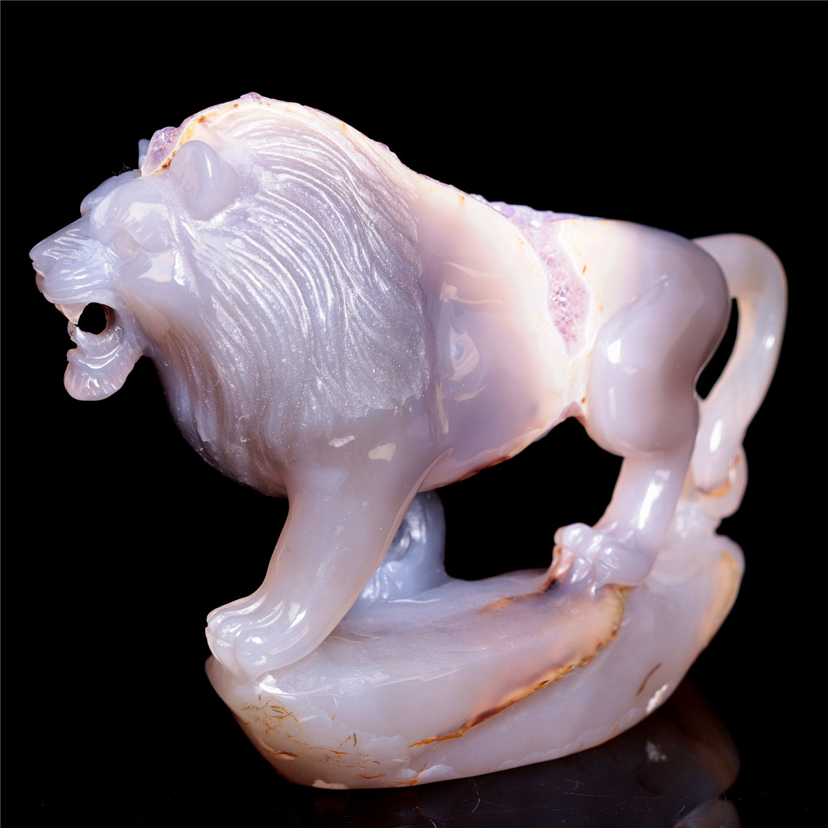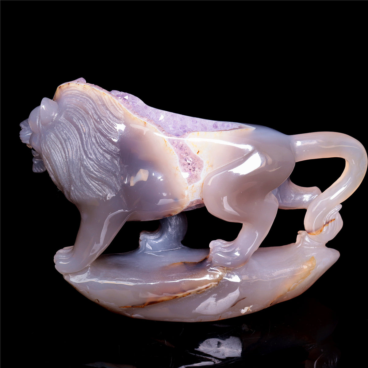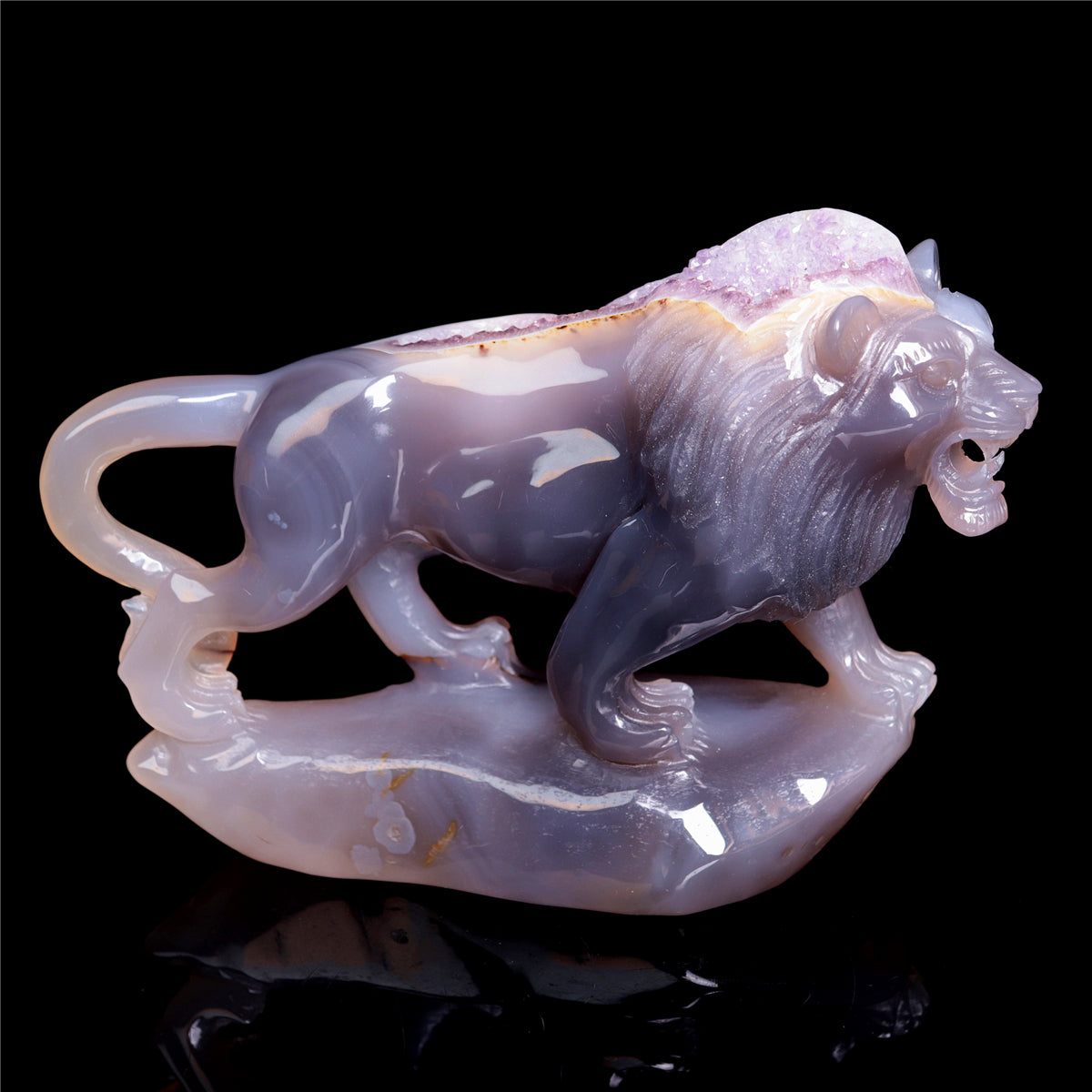 7.5" Amethyst Druzy Agate Crystal Lion Figurine Realistic Animal Carvings Decor