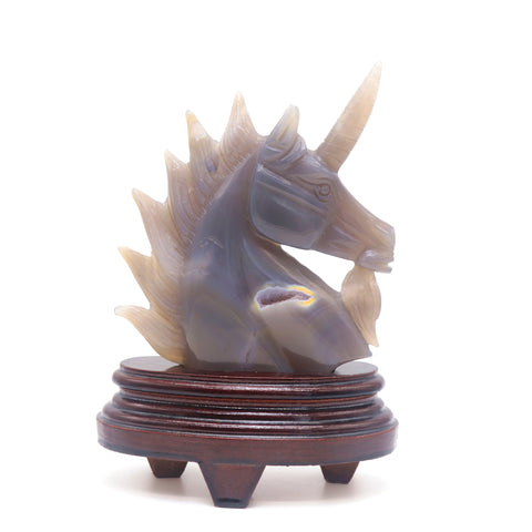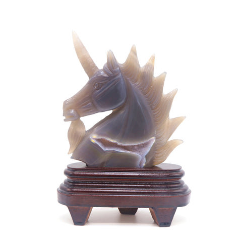 7.5" Natural Agate Druzy Hand Carved Unicorn Sculpture, Reiki Healing U01