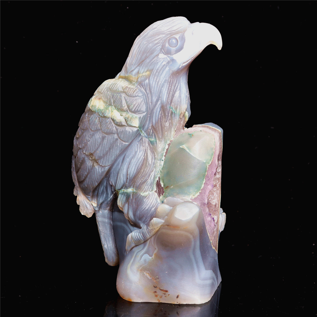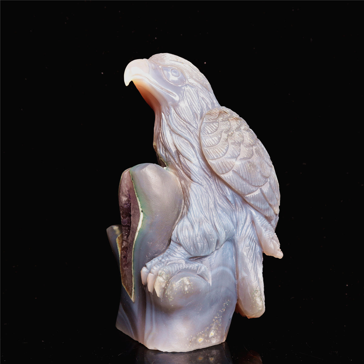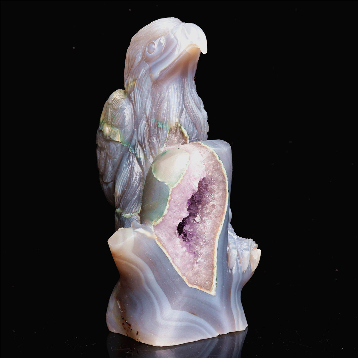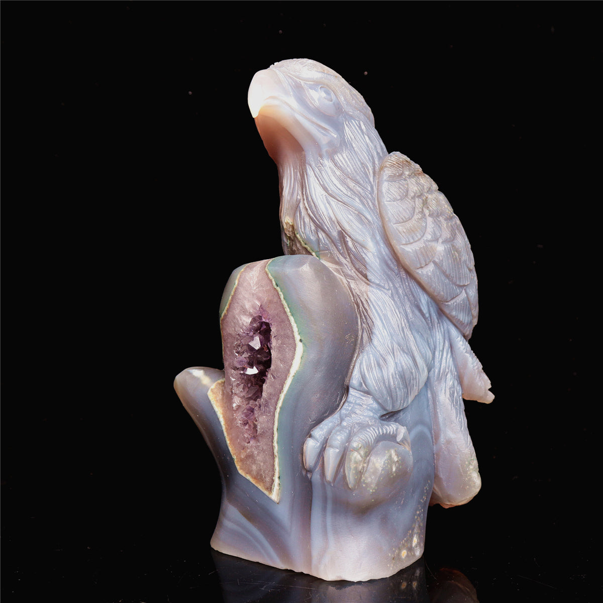 7" Amethyst Agate Crystal Eagle Figurine Stone Animal Carvings