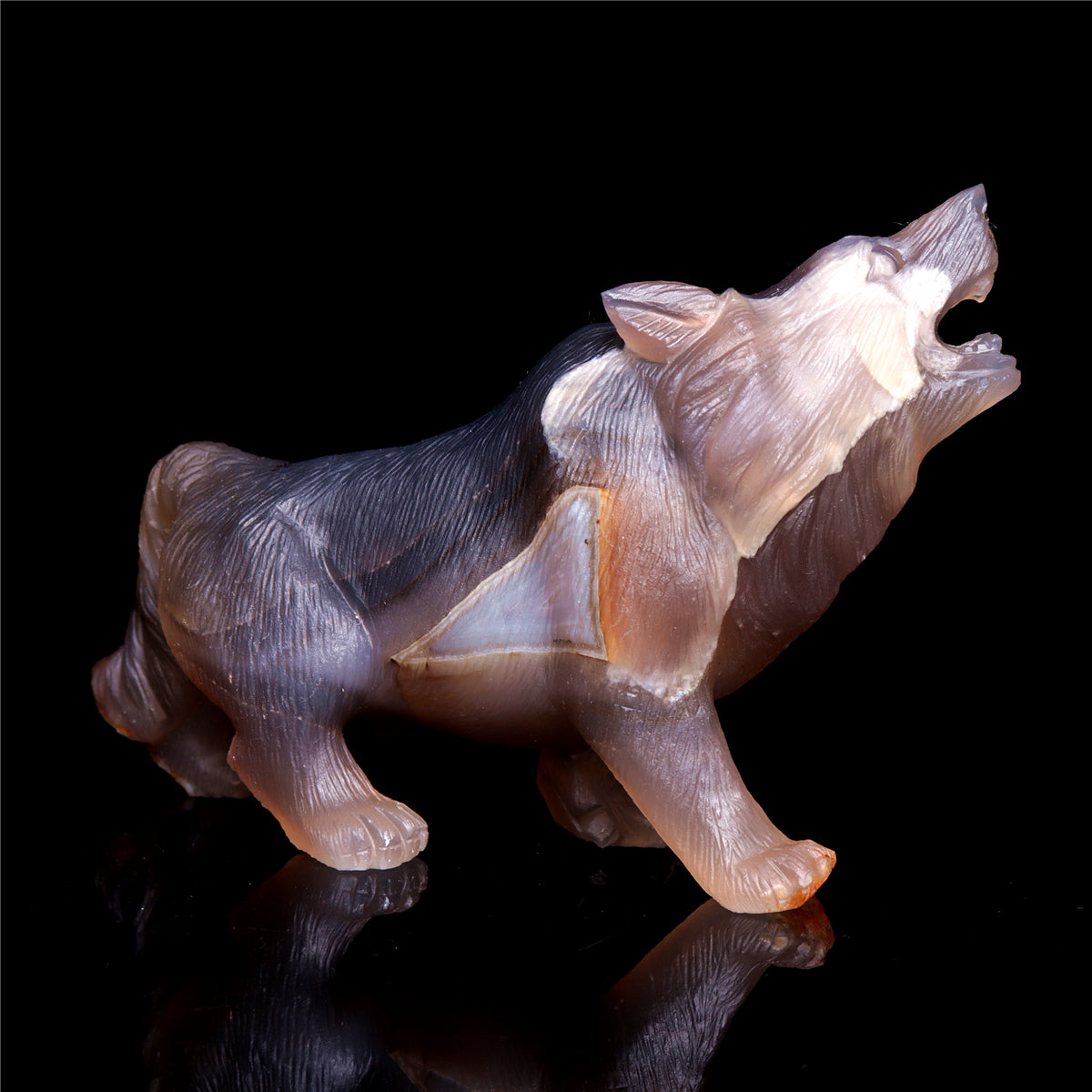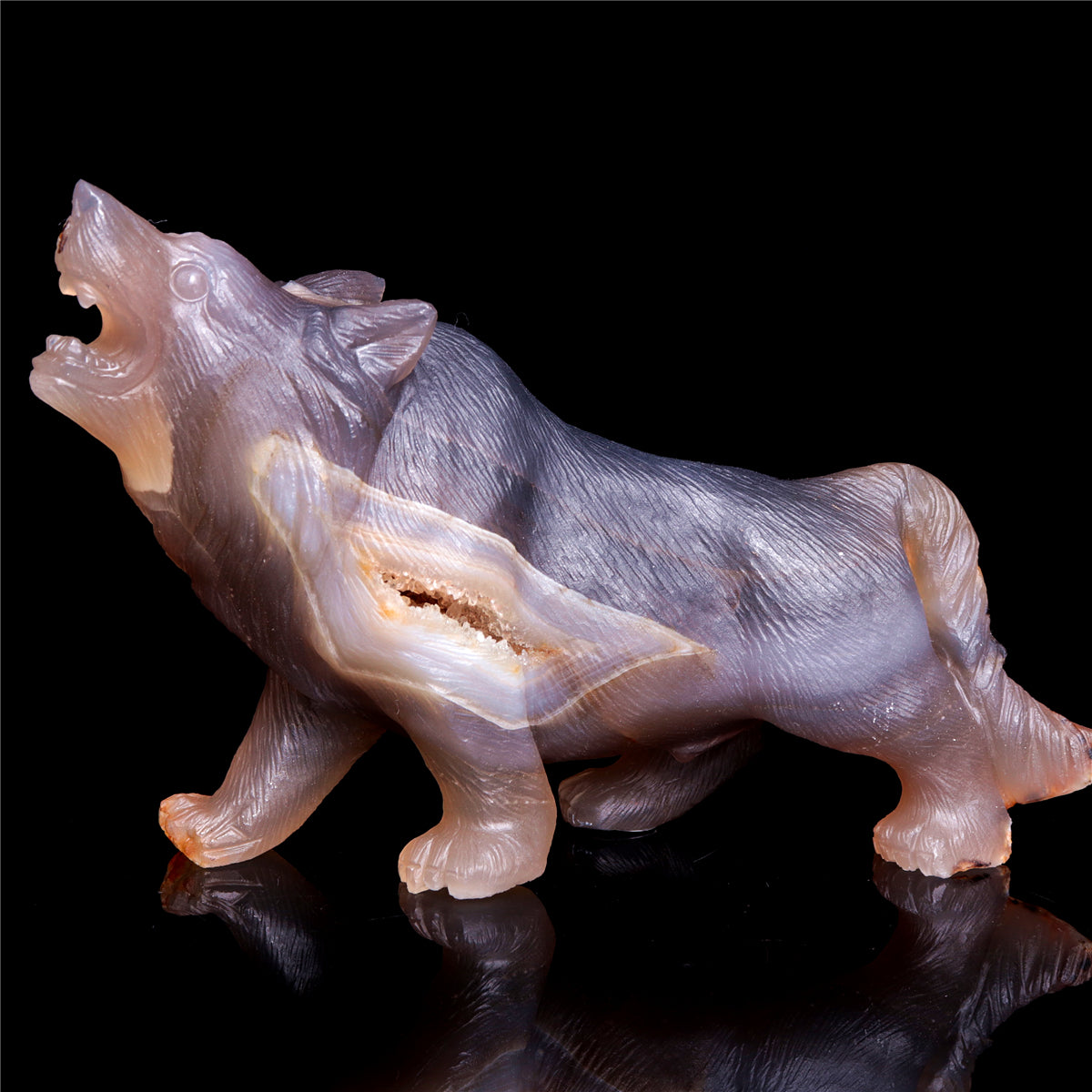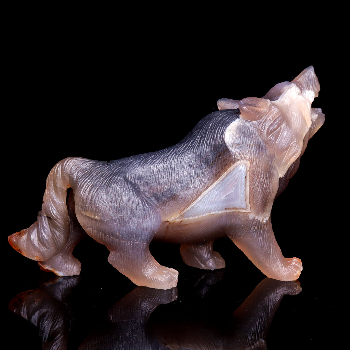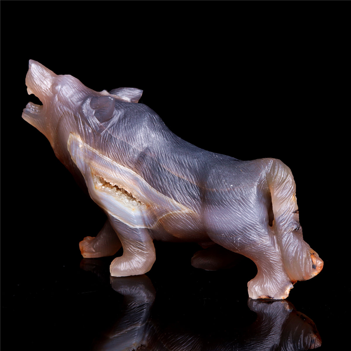 7" Druzy Agate Crystal Wolf Figurine Stone Animal Carvings