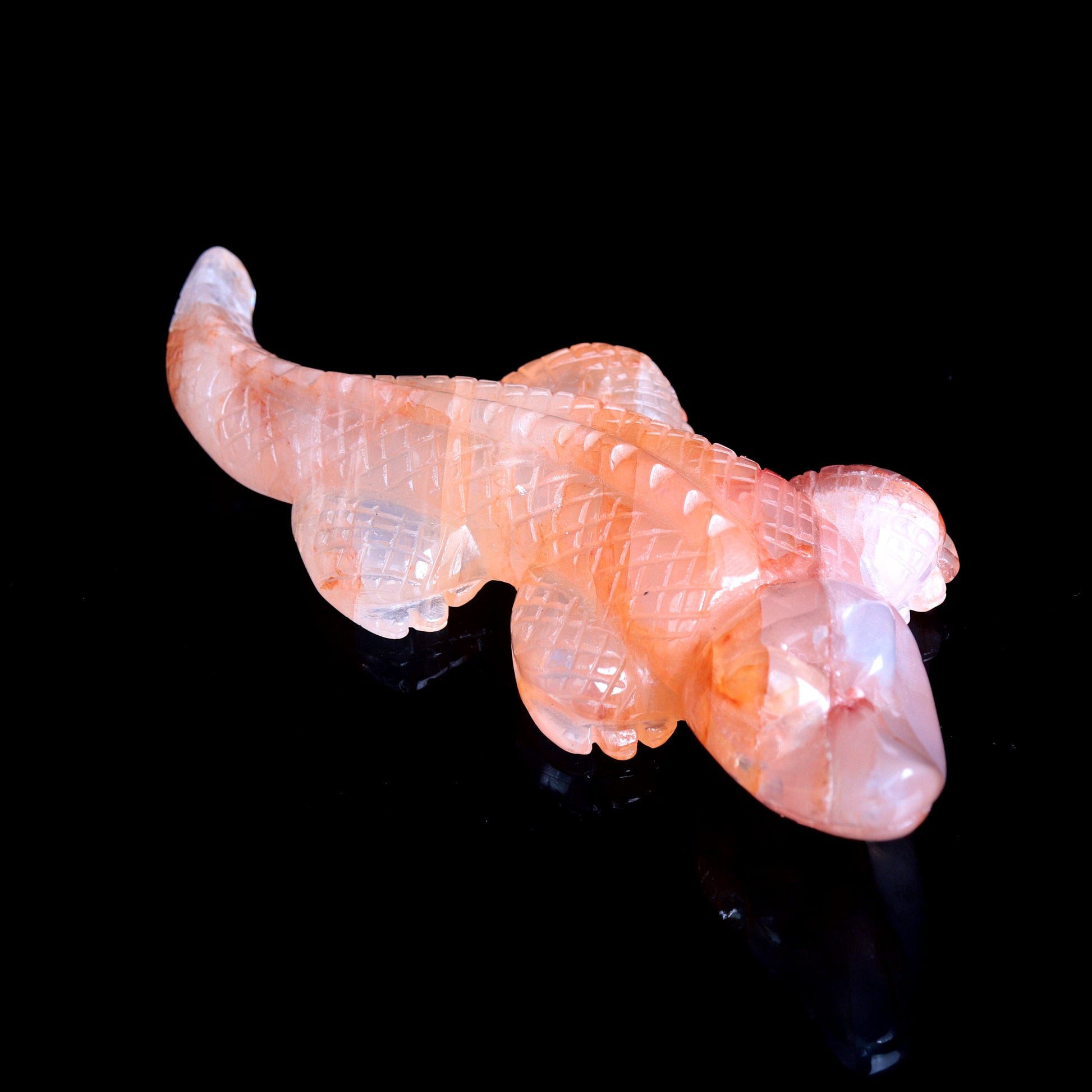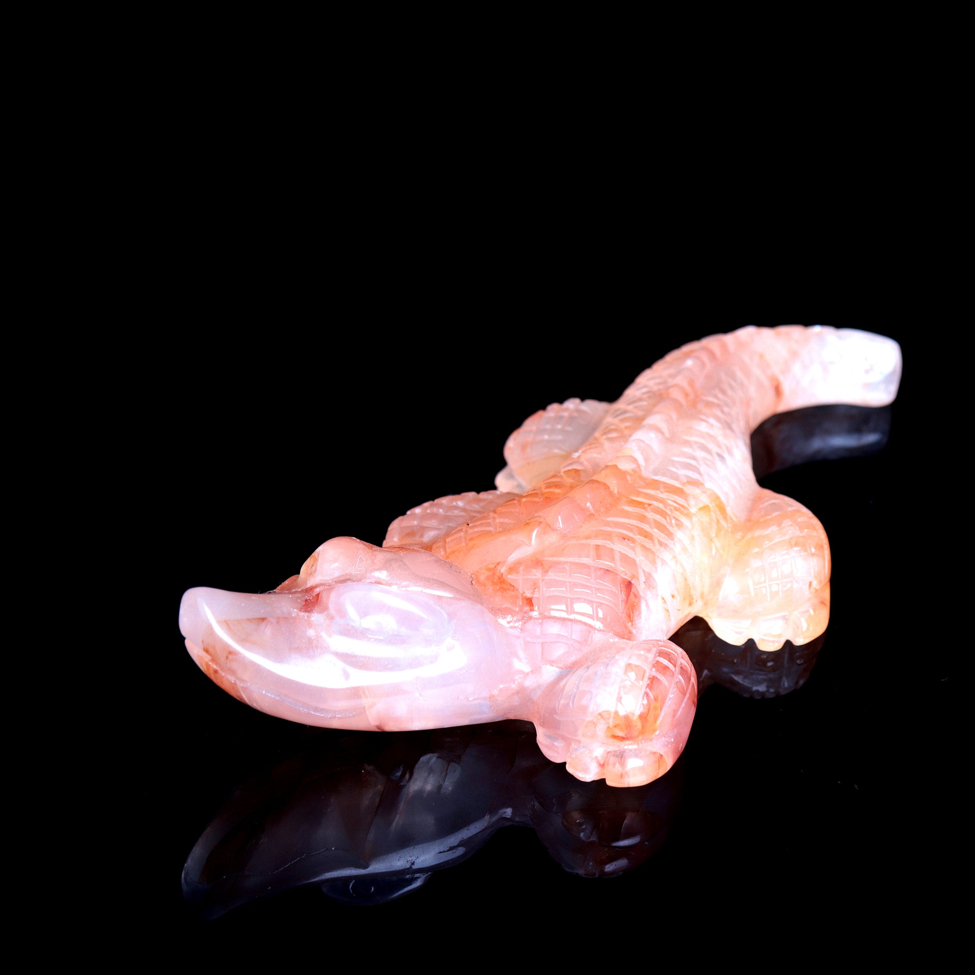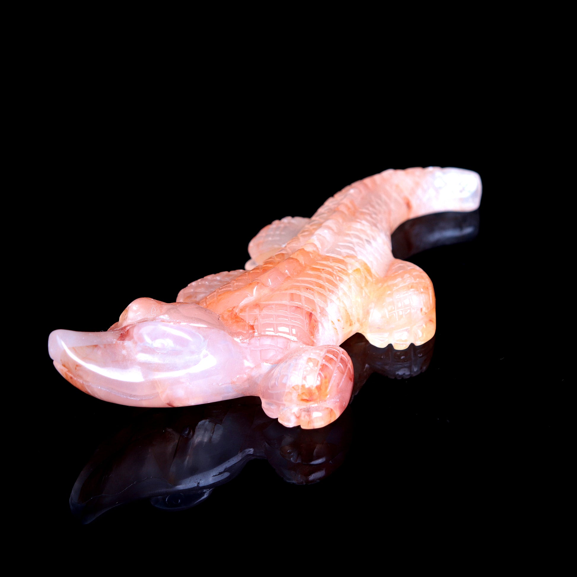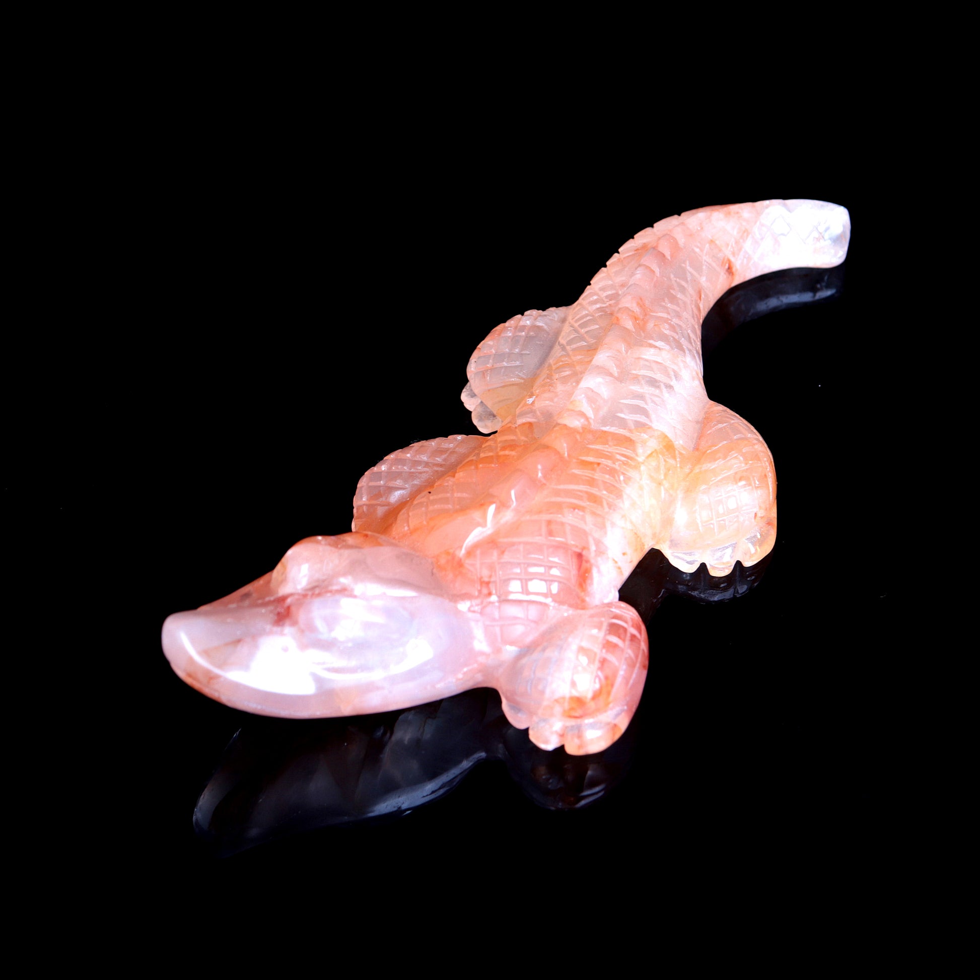 7" Fire Quartz Carved Crystal Alligator Crocodile Sculpture Healing