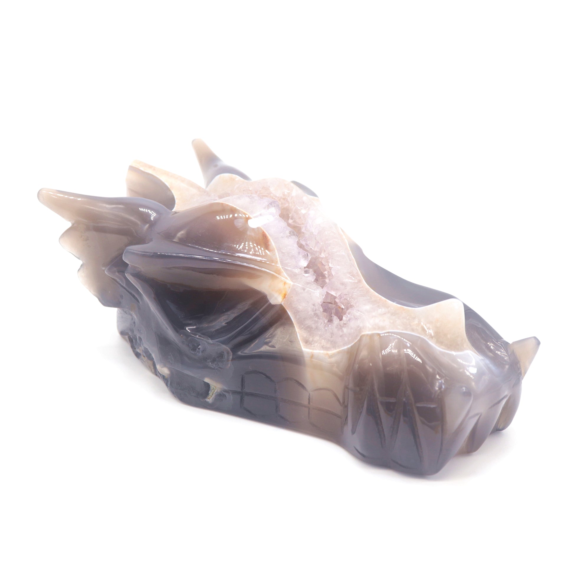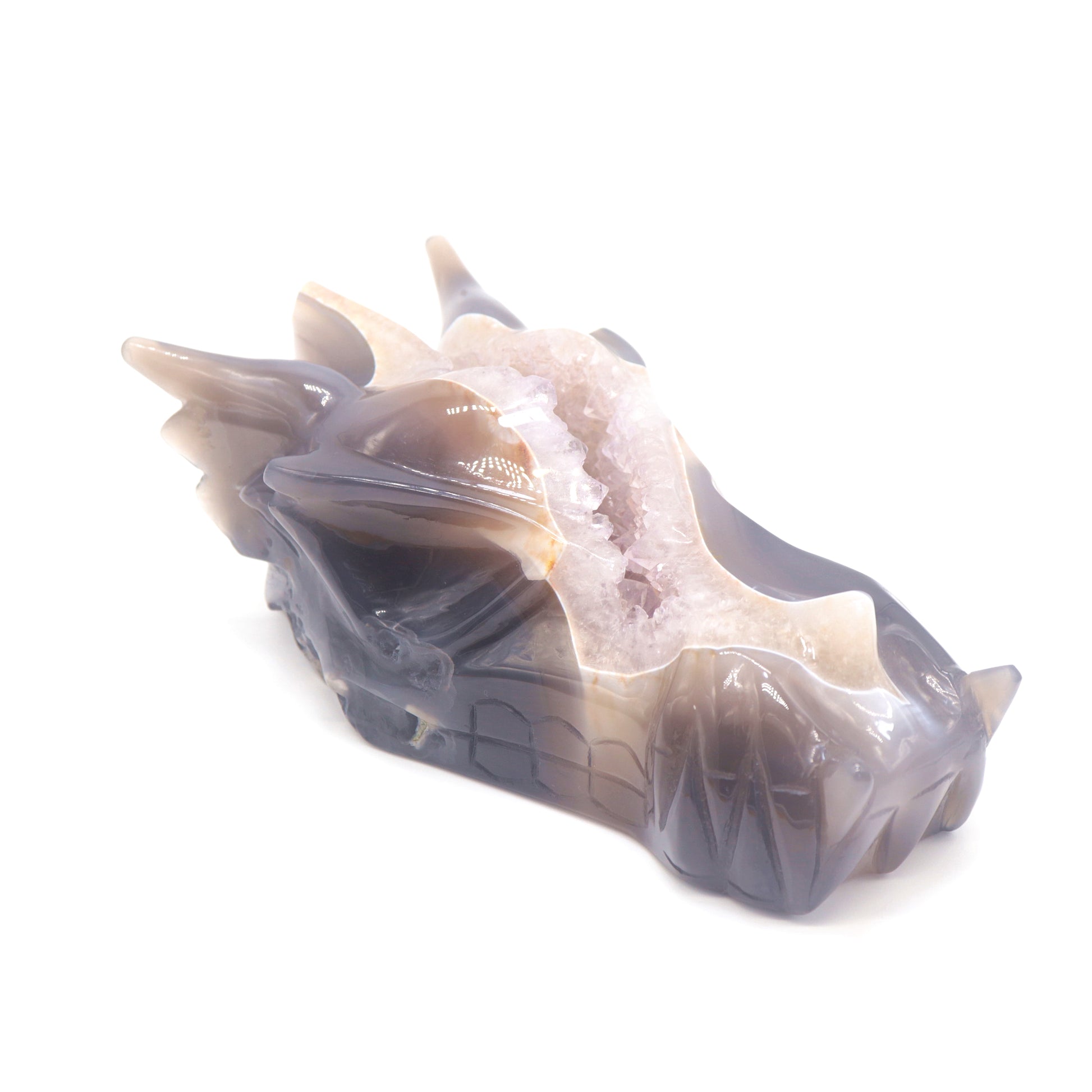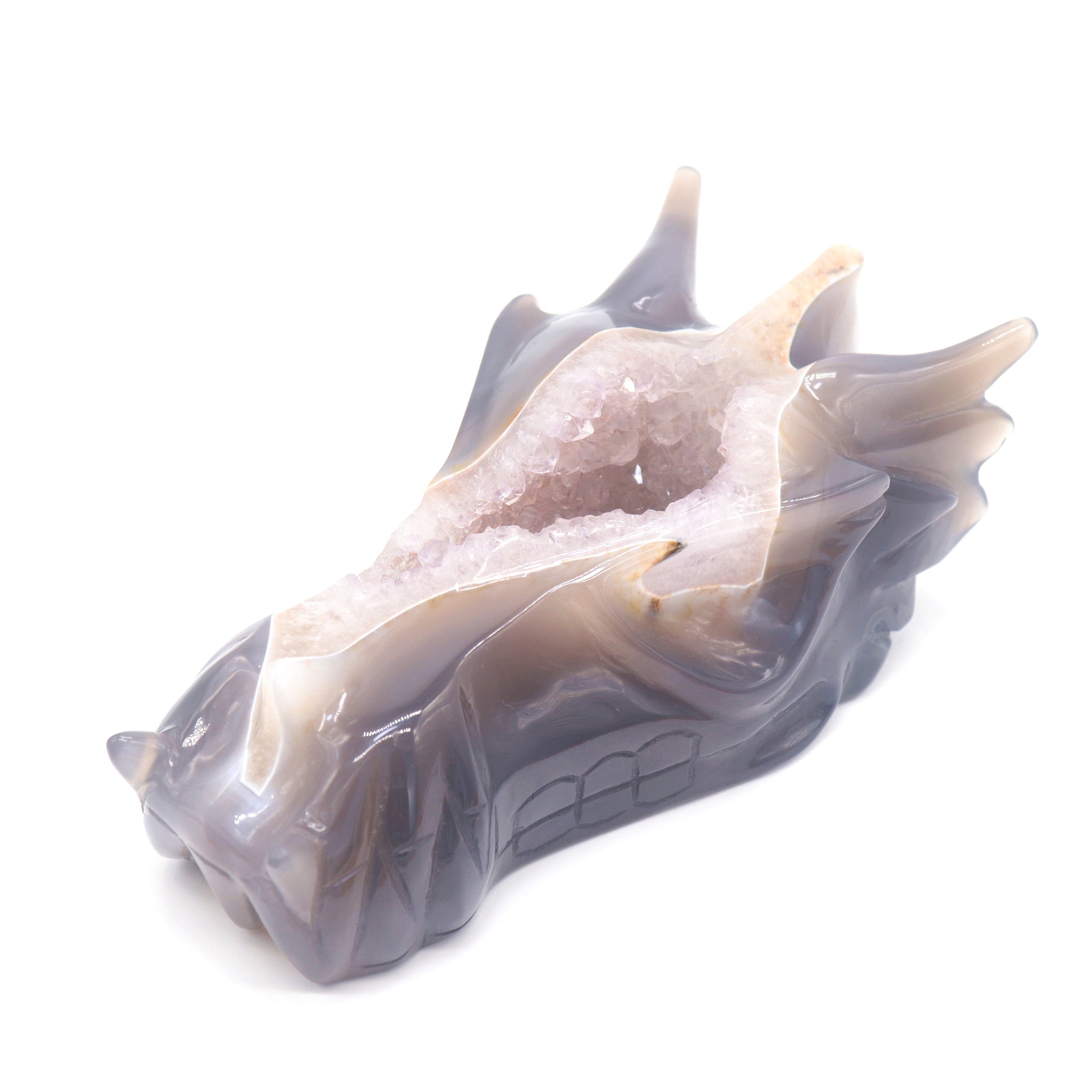 7" Hand Carved Druzy Agate Dragon Head Sculpture Amethyst Geode Crystal Healing Reiki