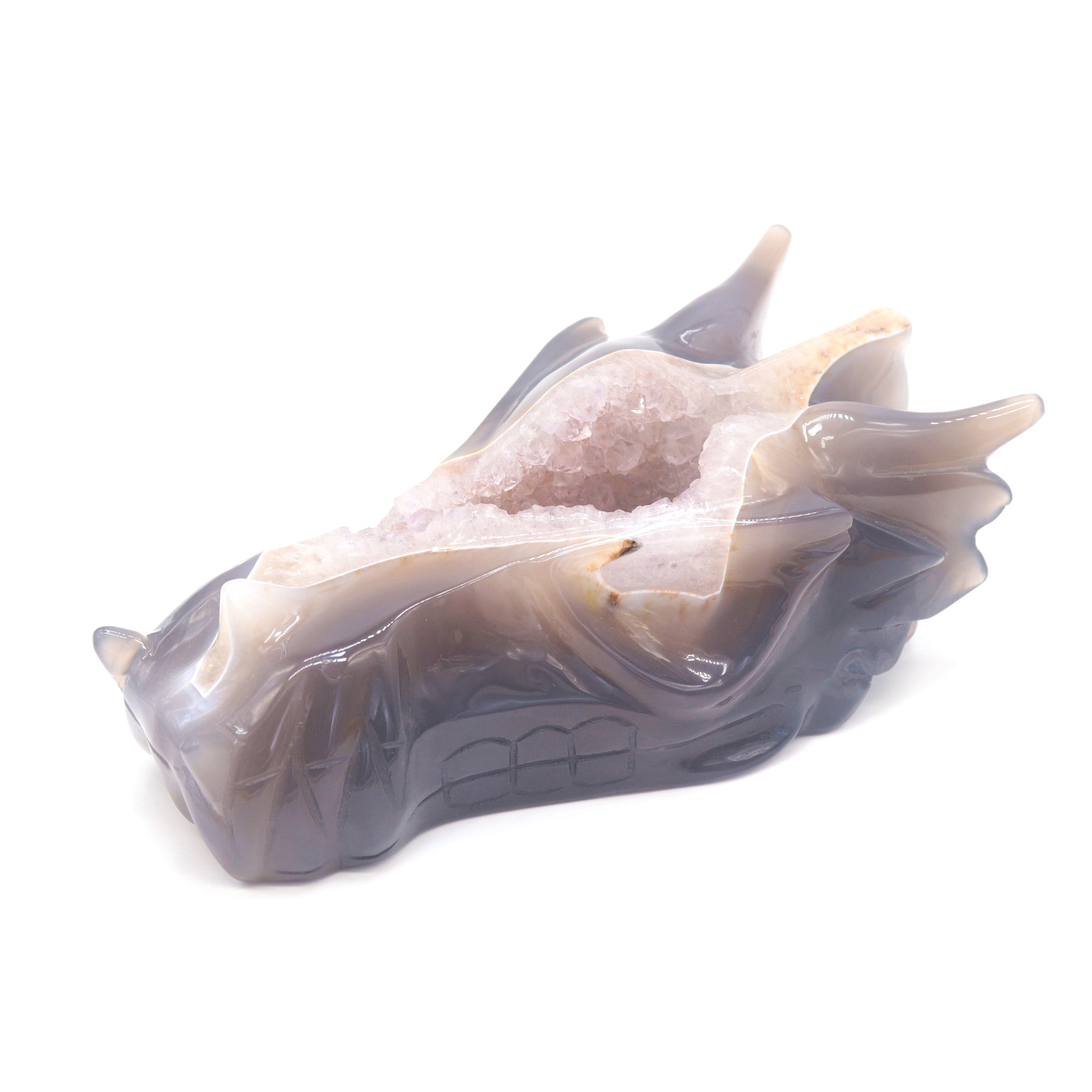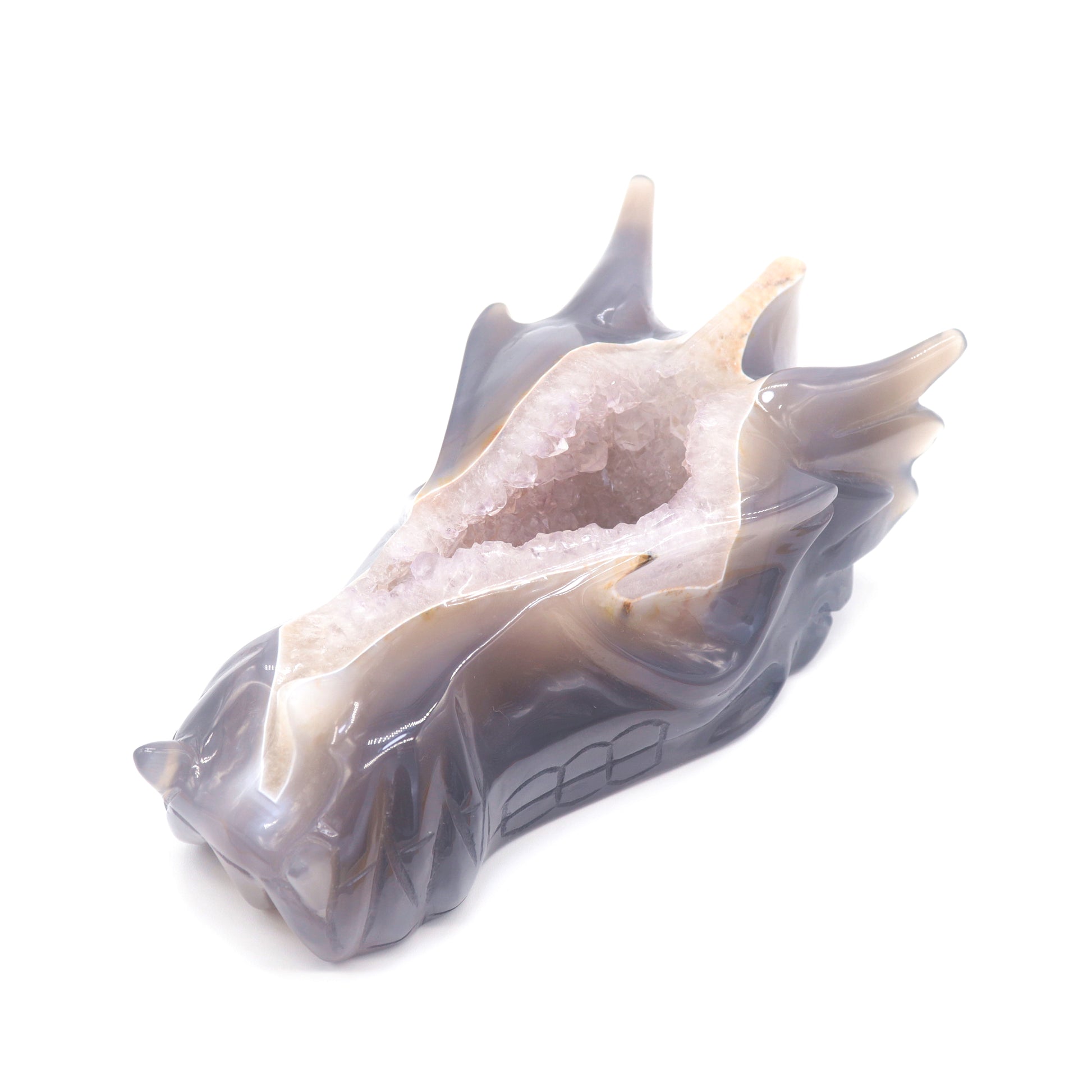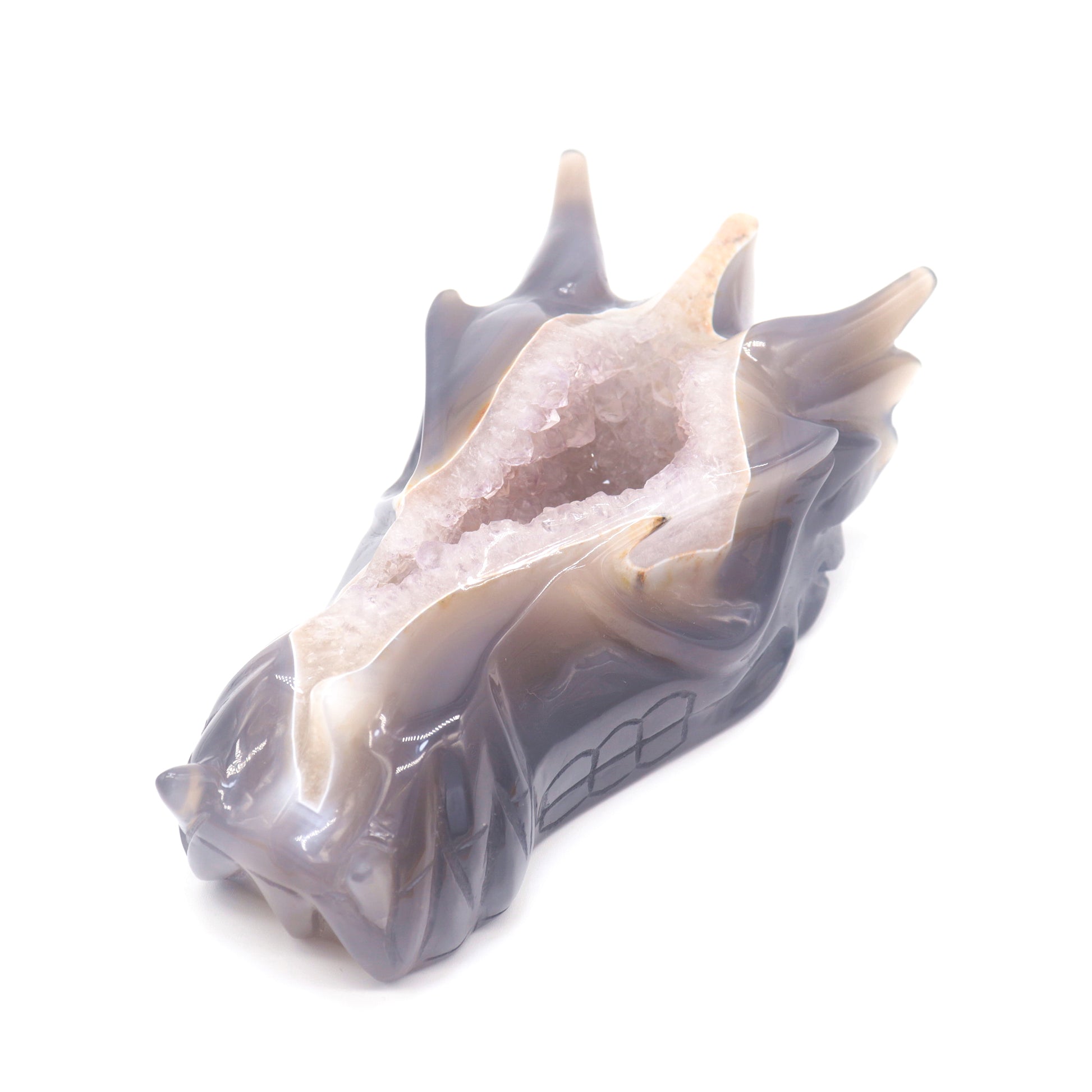 7" Hand Carved Druzy Agate Dragon Head Sculpture Amethyst Geode Crystal Healing Reiki