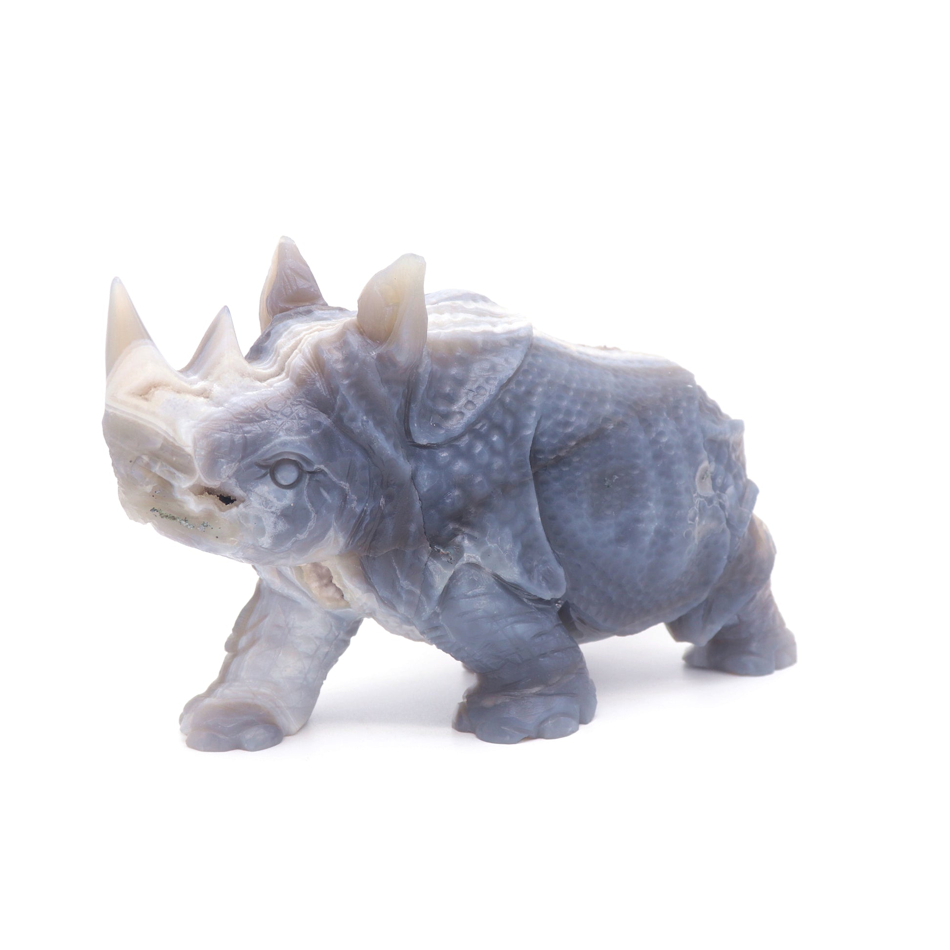 8" HandCarved Druzy agate Crystal Rhino Reiki Decorate Gift