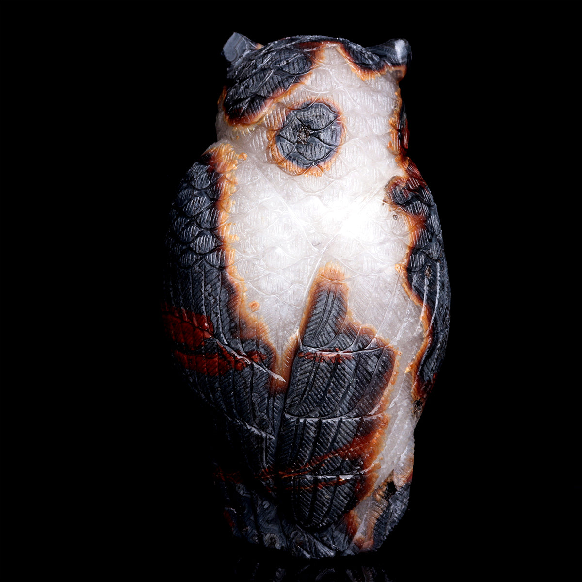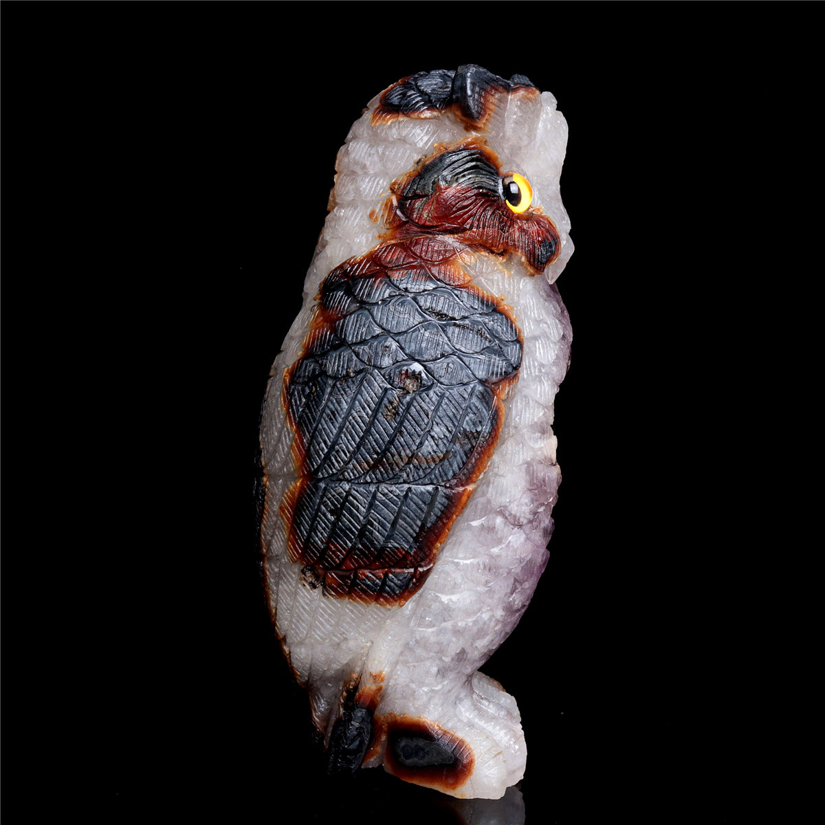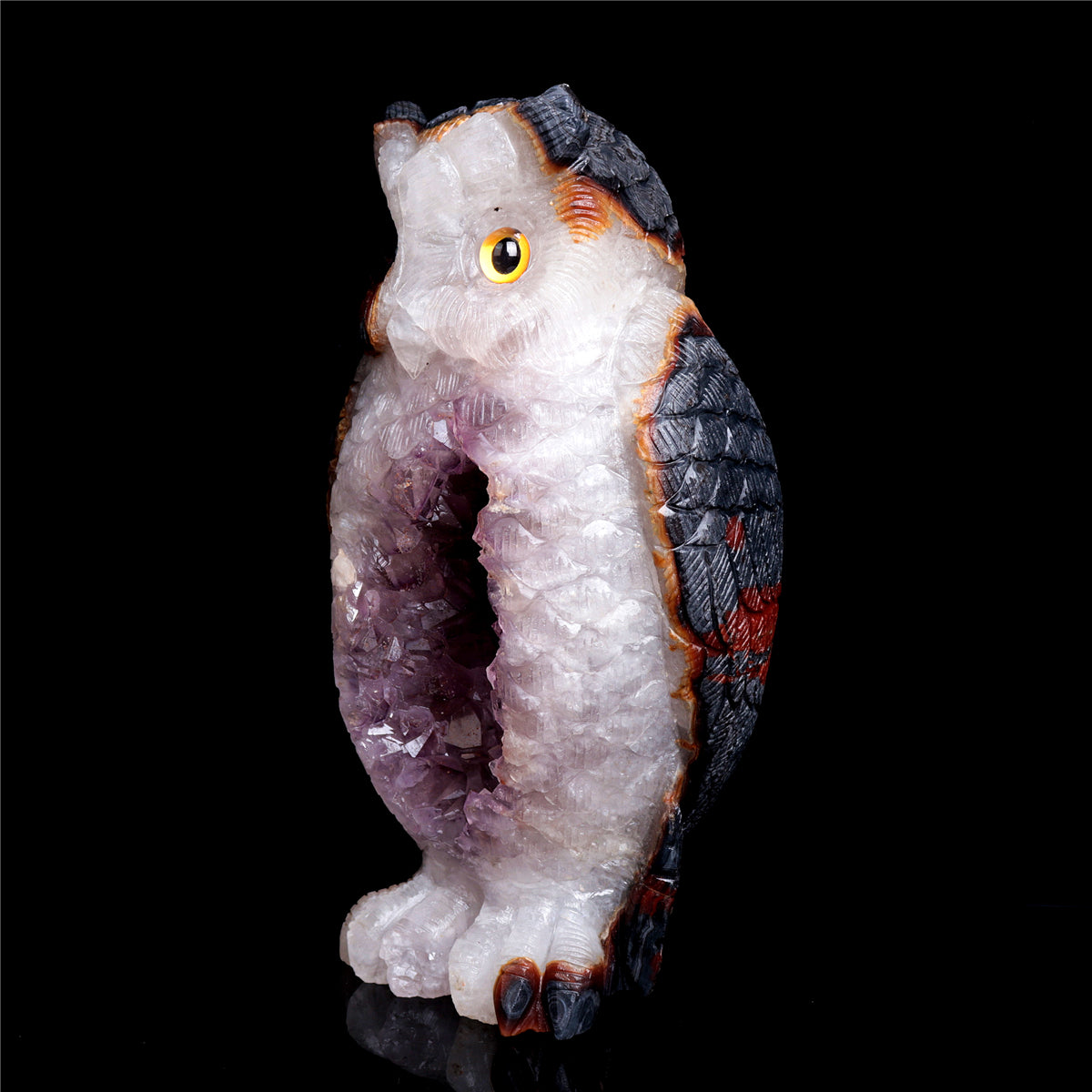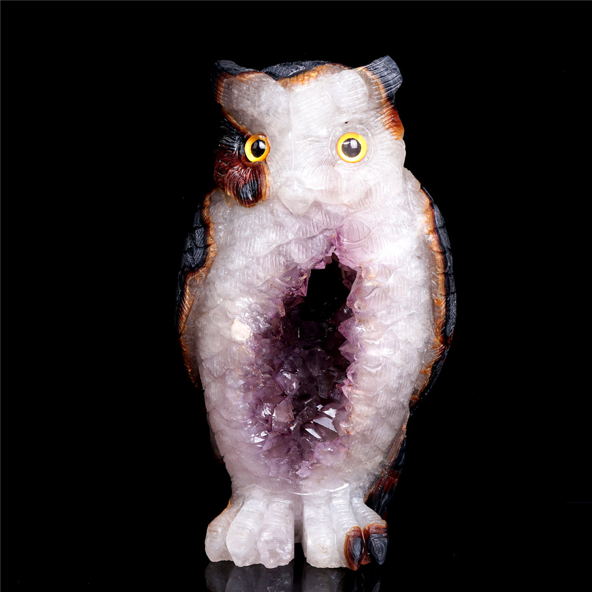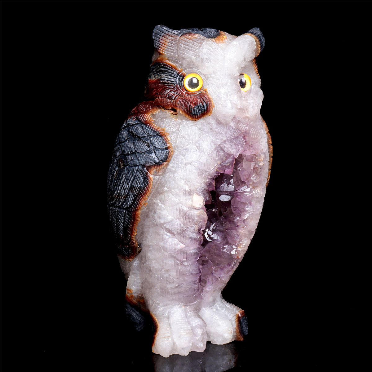9" Amethyst Geode Crystal Owl Sculpture Stone Animal Carvings