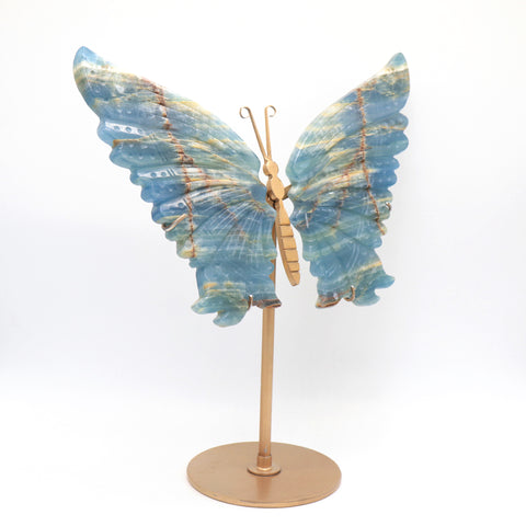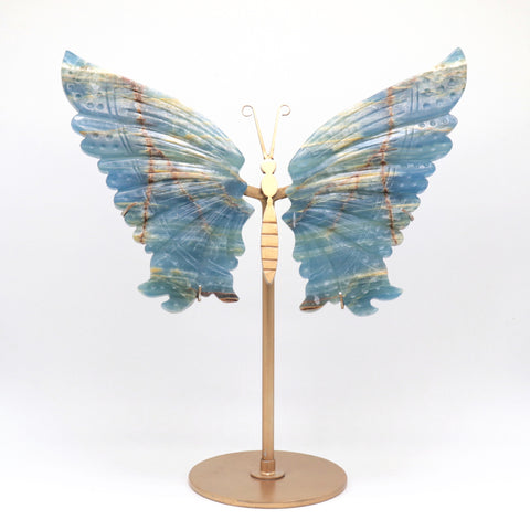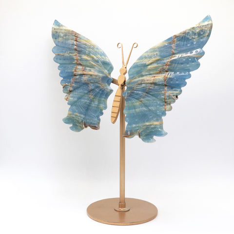 Natural Blue Onyx Crystal Butterfly wings Quartz Healing + stand 1pc