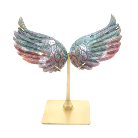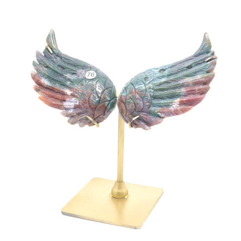 Natural Ocean Jasper Crystal Angel wings Quartz Healing + stand 1pc