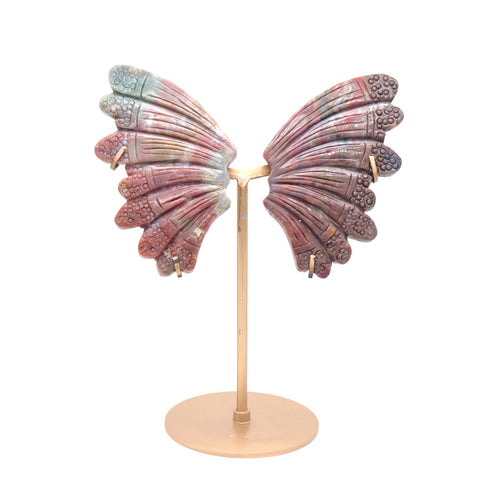 Natural Ocean Jasper Crystal Butterfly wings Quartz Healing + stand 1pc